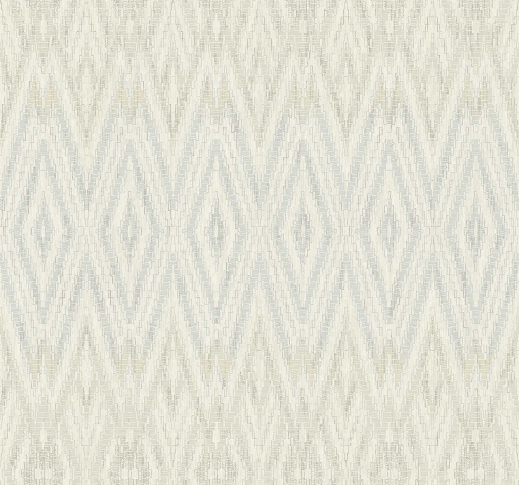 Use:Ikat pattern Diamond Marquise weaves a pale blue and cream tapestry of elegance in this updated homage to the timeless charm of native handlooms. This Diamond Marquise Wallpaper measures approximately 27 inches wide by 27 feet long, measuring approximately 60.8 square feet per roll. Organic simplicity and lustrous adornment for the modern home.