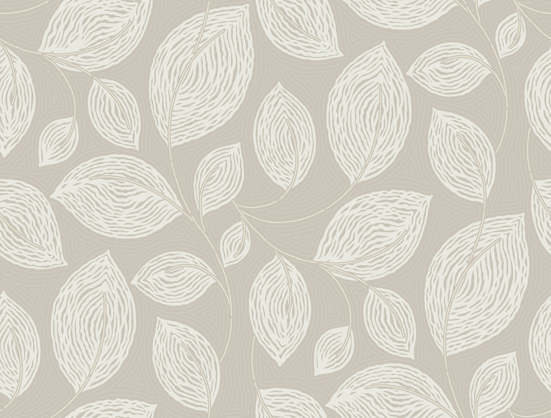 Use:Sprigs of Contoured Leaves featuring white veining float across a taupe canvas with topographic, pearlescent detailing for added depth. This Contoured Leaves Wallpaper measures approximately 27 inches wide by 27 feet long, measuring approximately 60.8 square feet per roll. Organic simplicity and lustrous adornment for the modern home.