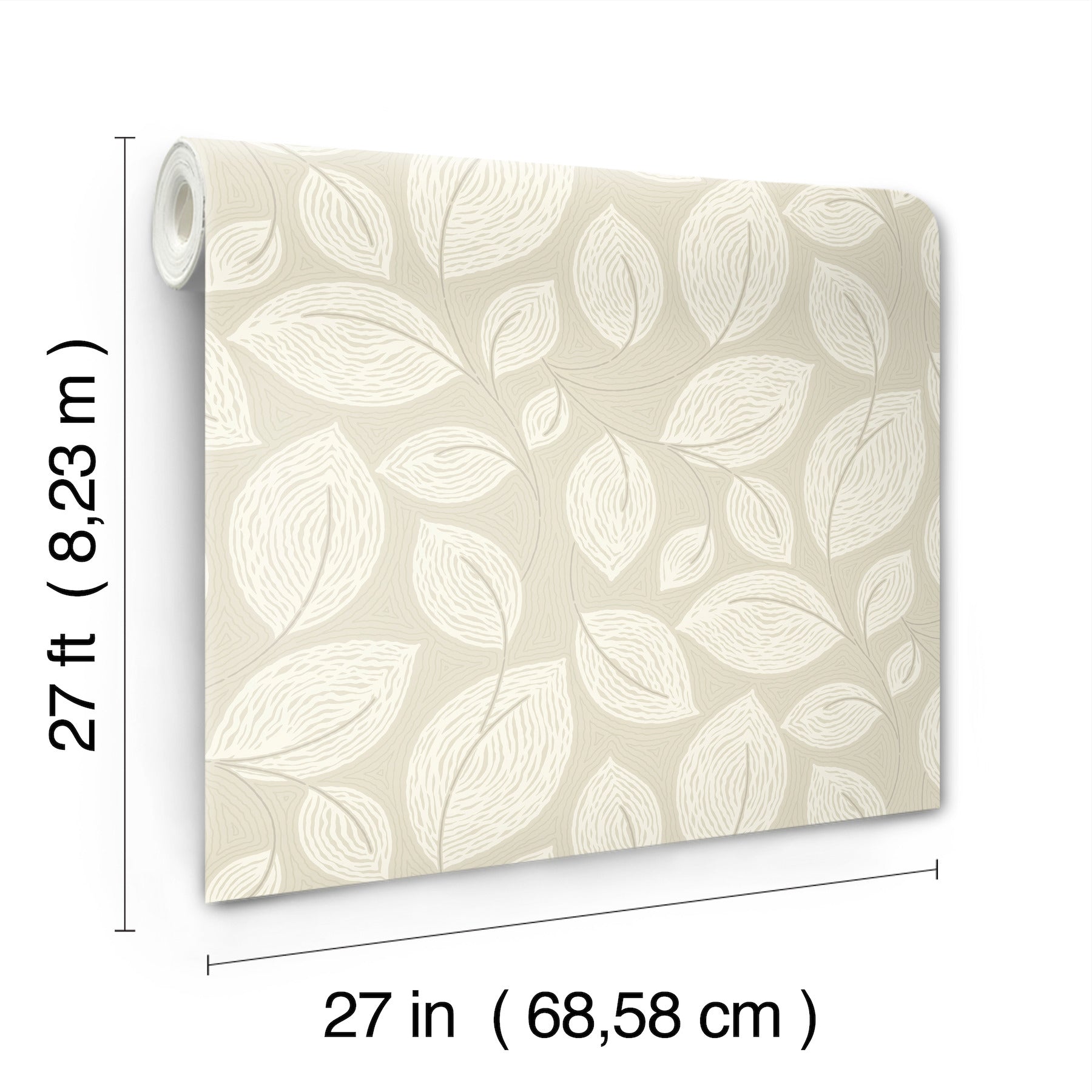 Use:Sprigs of Contoured Leaves featuring white veining float across a pale beige canvas with topographic, pearlescent detailing for added depth. This Contoured Leaves Wallpaper measures approximately 27 inches wide by 27 feet long, measuring approximately 60.8 square feet per roll. Organic simplicity and lustrous adornment for the modern home.