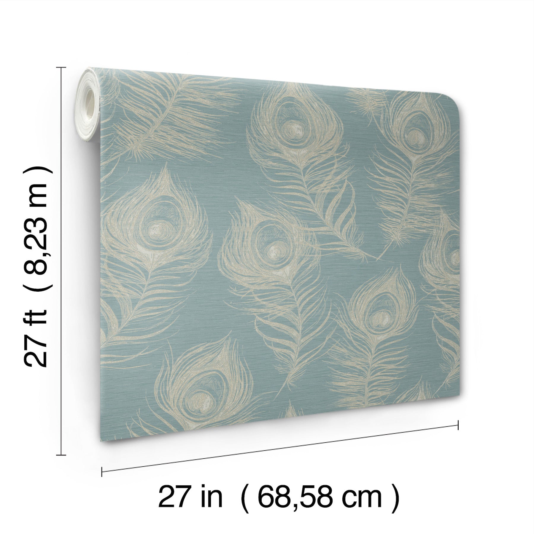 Use:Grey feathers from the train of the peafowl brushed with golden pearlescence create a magnificent display against robin's egg blue in pattern Regal Peacock. This Regal Peacock Wallpaper measures approximately 27 inches wide by 27 feet long, measuring approximately 60.8 square feet per roll. Organic simplicity and lustrous adornment for the modern home.