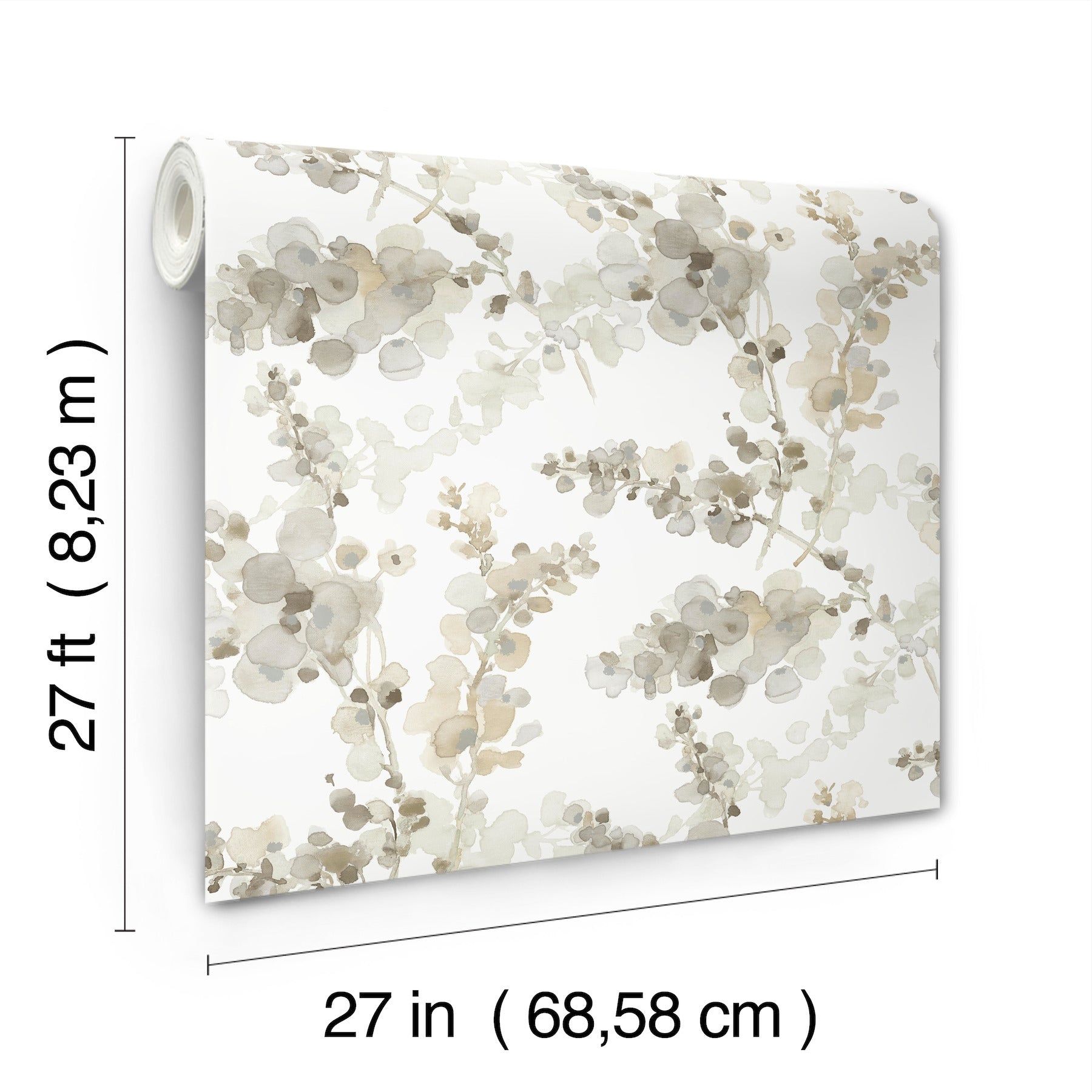 Use:Stems of frothy grey and taupe watercolor petals accented with metallic gold make Blossom Fling a vivacious classic with fresh perspective. This Blossom Fling Wallpaper measures approximately 27 inches wide by 27 feet long, measuring approximately 60.8 square feet per roll. Organic simplicity and lustrous adornment for the modern home.