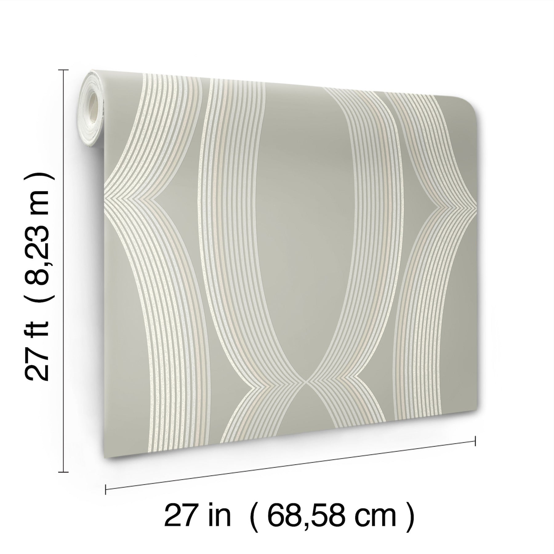 Use:The oversized elliptical shapes of the pattern Progression Ogee are emphasized by a gradient of grey and cream rings against a grey backdrop. This Progression Ogee Wallpaper measures approximately 27 inches wide by 27 feet long, measuring approximately 60.8 square feet per roll. Organic simplicity and lustrous adornment for the modern home.