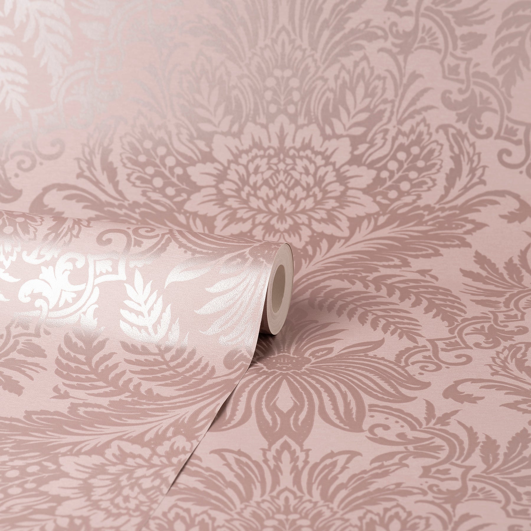 Use:Enjoy instant sophistication with this traditional damask wallpaper. The stately floral and botanical details have a silken sheen, allowing the rose hues to contrast with its matte blush backdrop. Signature is an unpasted, paper wallpaper measuring 20.9 inches wide by 33 feet long, covering approximately 57.5 square feet per roll. Unpasted paper material; 20.9-in repeat, straight match; Washable and peelable; 20.9-in by 33-ft long roll; Covers about 57.5 square feet