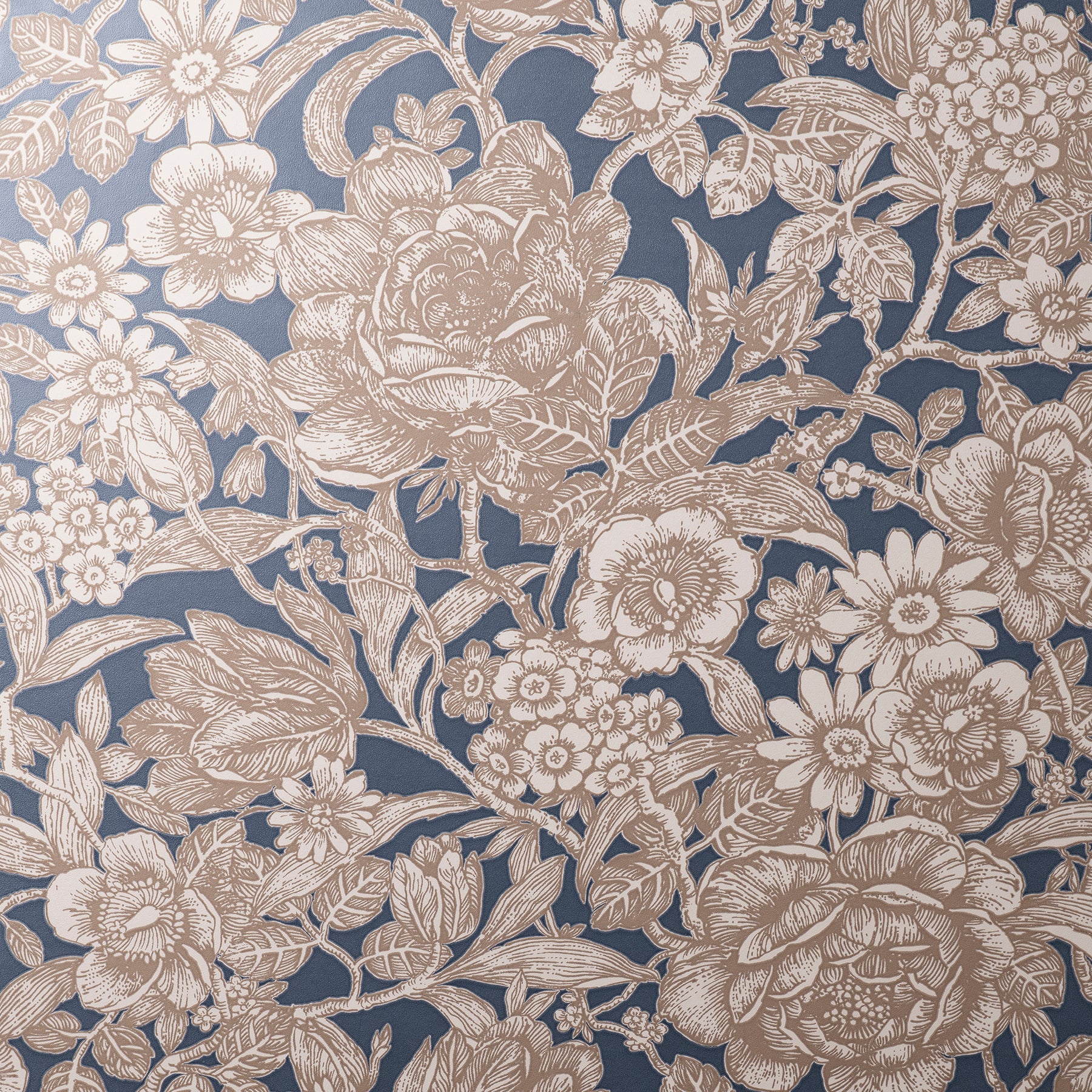 Use:This beautiful floral trail wallpaper offers updated Victorian-era beauty. The abundant flowers and twining branches are illustrated in bold copper strokes against white and offset along a solid dark blue backdrop. Hedgerow is an unpasted, paper wallpaper measuring 20.9 inches wide by 33 feet long, covering approximately 57.5 square feet per roll. Unpasted paper material; 20.9-in repeat, drop match; Washable and peelable; 20.9-in by 33-ft long roll; Covers about 57.5 square feet