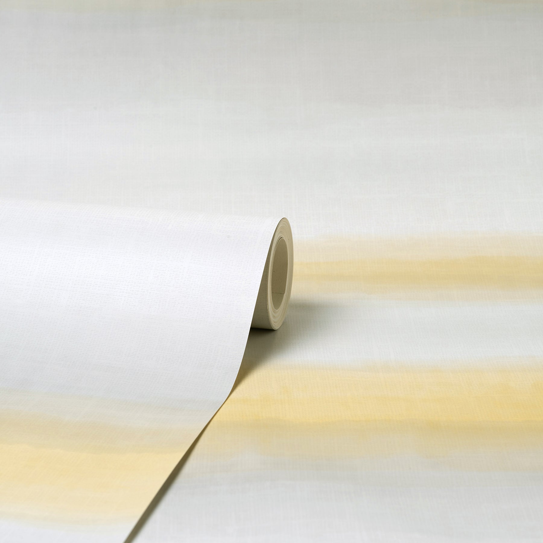 Use:The artistic, watercolor treatment of these simple yellow, pale grey, and dove stripes brings warmth and casual elegance to any space. Freya is an unpasted, paper wallpaper measuring 20.5 inches wide by 33 feet long, covering approximately 56.4 square feet per roll. Unpasted paper material; 20.9-in repeat, straight match; Washable and peelable; 20.5-in by 33-ft long roll; Covers about 56.4 square feet