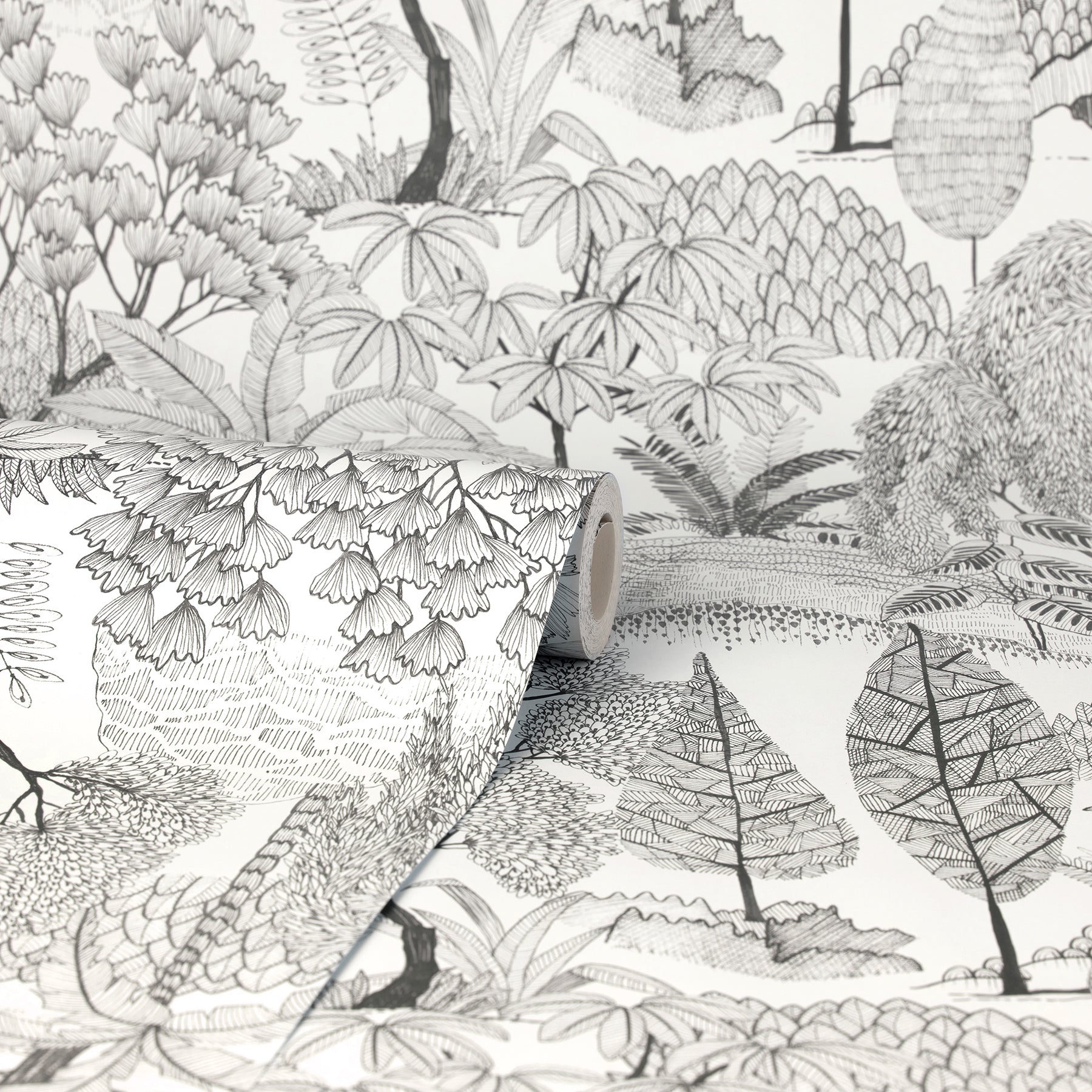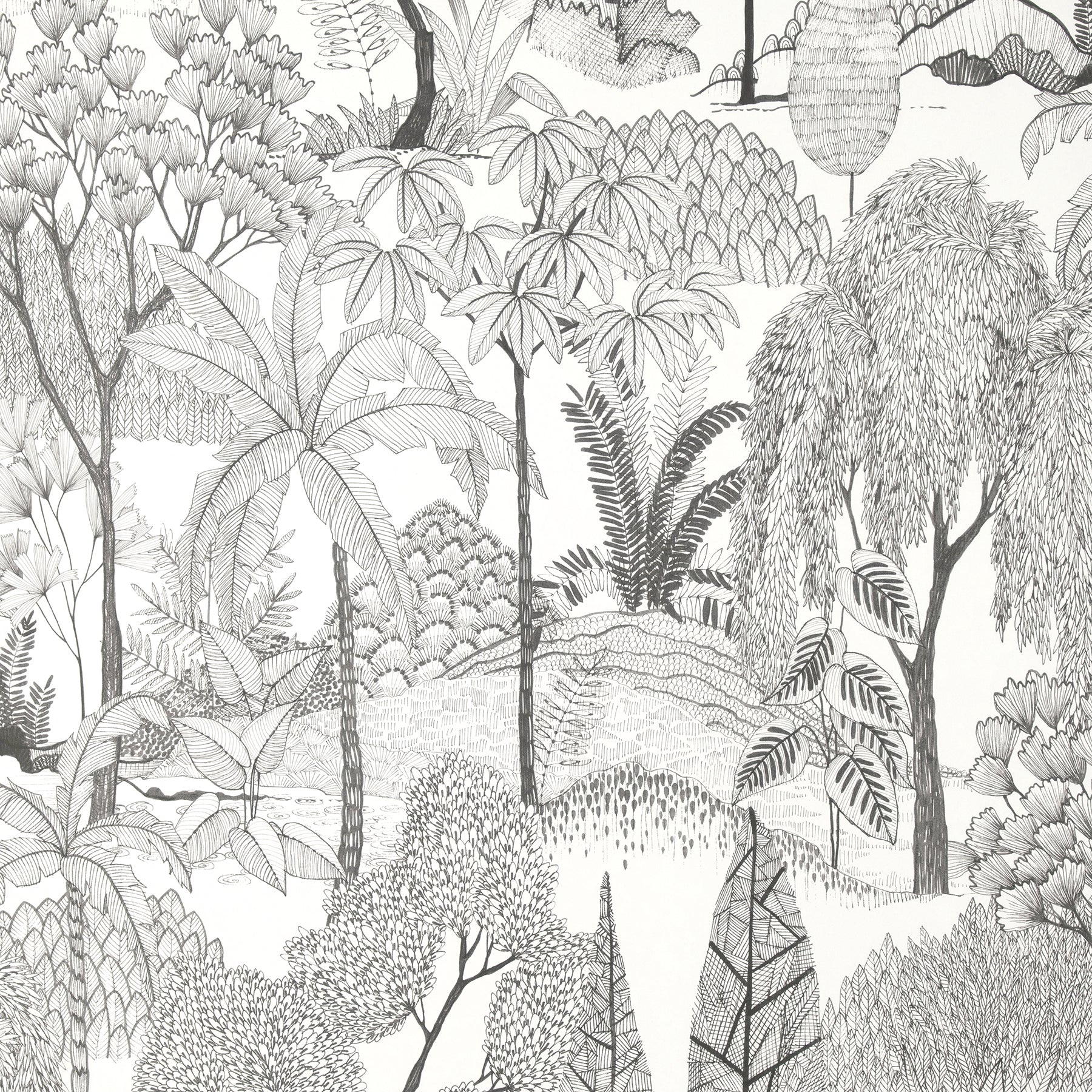 Use:An abundance of lush, wild greenery decorates a remote island in this illustrative wallpaper design. Featured here in charcoal grey linework against white. Lilou is an unpasted, paper wallpaper measuring 20.5 inches wide by 33 feet long, covering approximately 56.4 square feet per roll. Unpasted paper material; 25.2-in repeat, drop match; Washable and peelable; 20.5-in by 33-ft long roll; Covers about 56.4 square feet