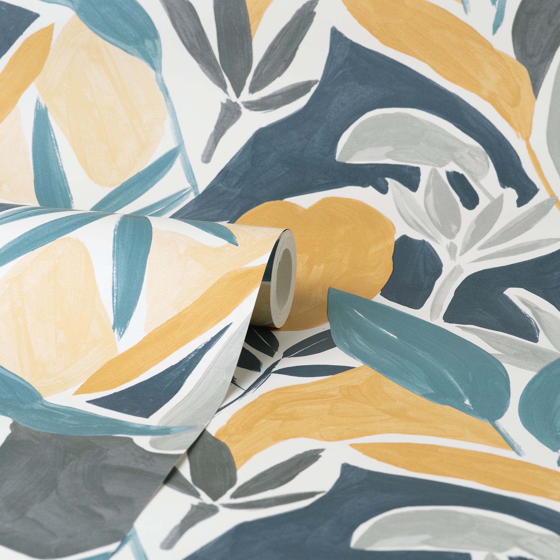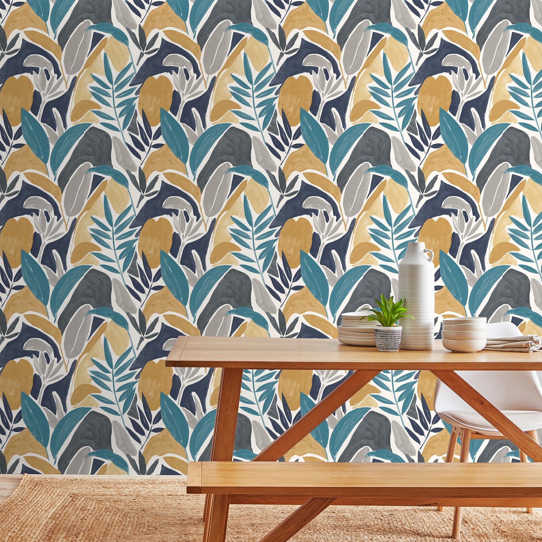 Use:The painterly take on dense forest greenery adds abstract and artistic flair to this leaf wallpaper. Featured here in a dynamic palette of blue, buttery yellow, and grey against white. Marisol is an unpasted, paper wallpaper measuring 20.5 inches wide by 33 feet long, covering approximately 56.4 square feet per roll. Unpasted paper material; 20.9-in repeat, straight match; Washable and peelable; 20.5-in by 33-ft long roll; Covers about 56.4 square feet