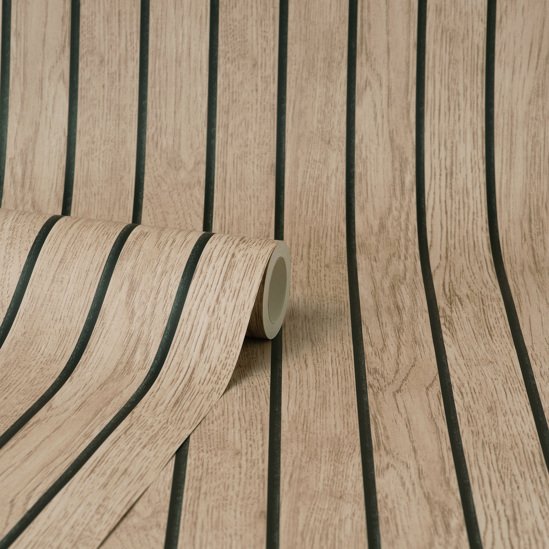 Use:Create a wood accent wall with ease using this wallpaper. The design perfectly mimics the appeal of thin, oaken slats. Seen here in a warm, medium brown with black accents. Manolo is an unpasted, non woven wallpaper measuring 20.5 inches wide by 33 feet long, covering approximately 56.4 square feet per roll. Unpasted non woven material; 20.9-in repeat, drop match; Washable and strippable; 20.5-in by 33-ft long roll; Covers about 56.4 square feet