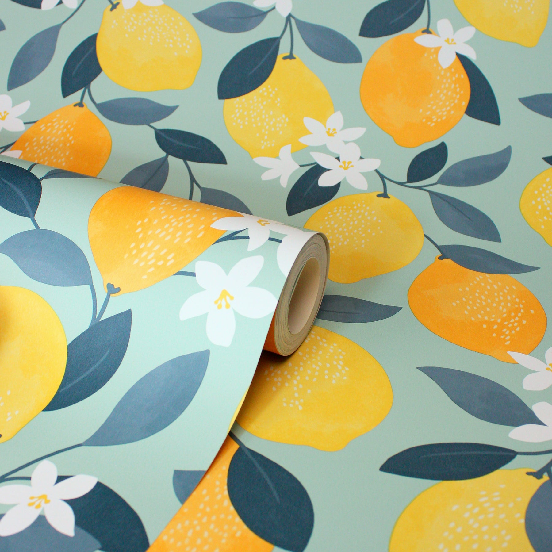 Use:Ripe lemons are embellished with late blooms in this charming fruit wallpaper. Seen here in a palette of bright yellow, blue, and white against a light blue backdrop. Inigo is an unpasted, paper wallpaper measuring 20.5 inches wide by 33 feet long, covering approximately 56.4 square feet per roll. Unpasted paper material; 20.9-in repeat, drop match; Washable and peelable; 20.5-in by 33-ft long roll; Covers about 56.4 square feet