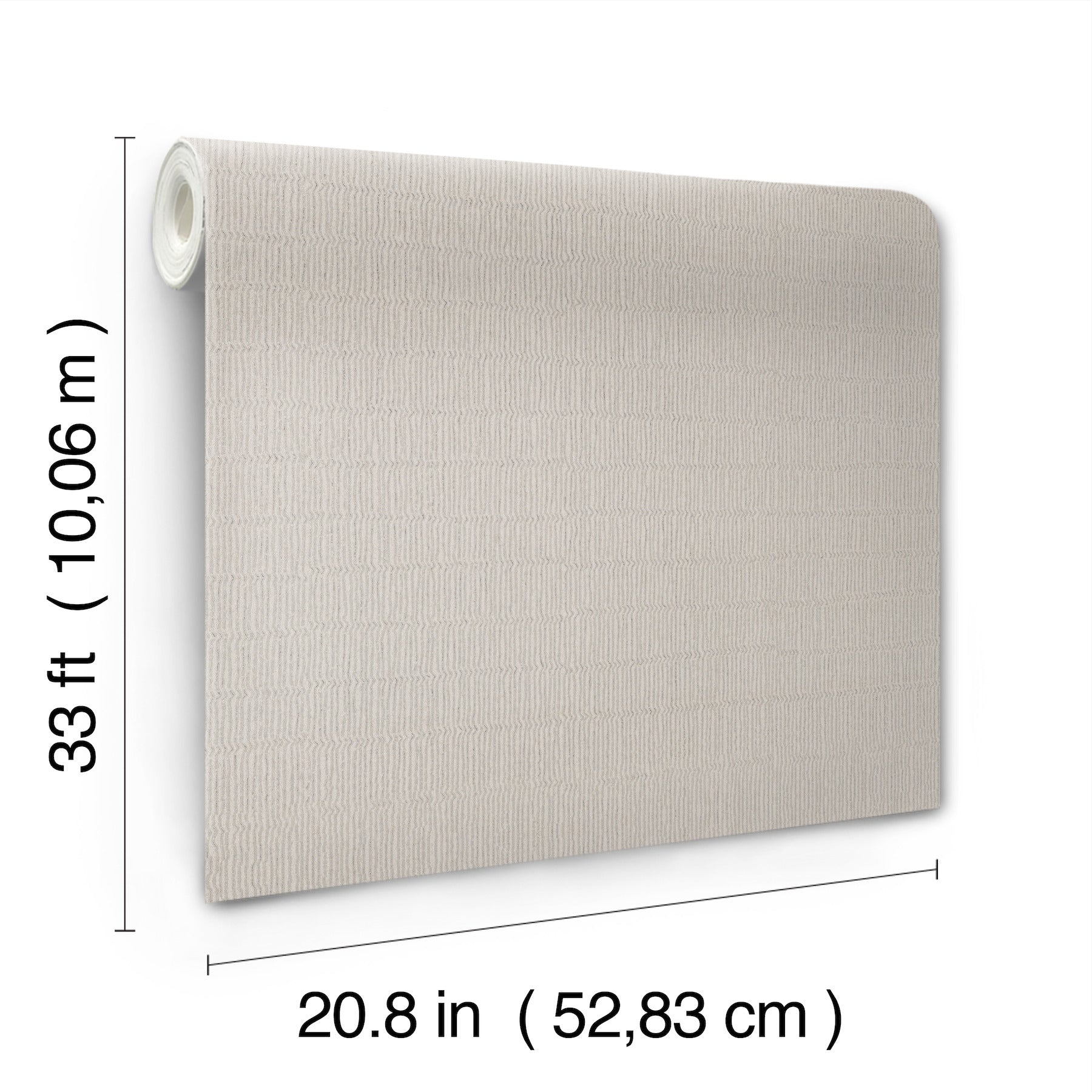 Use:Tectonic Texture's modern take on stripes features metallic silver lines with small peaks that form pointed bands between elongated stretches, all offset against a pale grey backdrop. This Tectonic Texture Wallpaper measures approximately 20.8 inches wide by 33 feet long, measuring approximately 57.2 square feet per roll. Textural, organic forms grounded in earthly inspiration.
