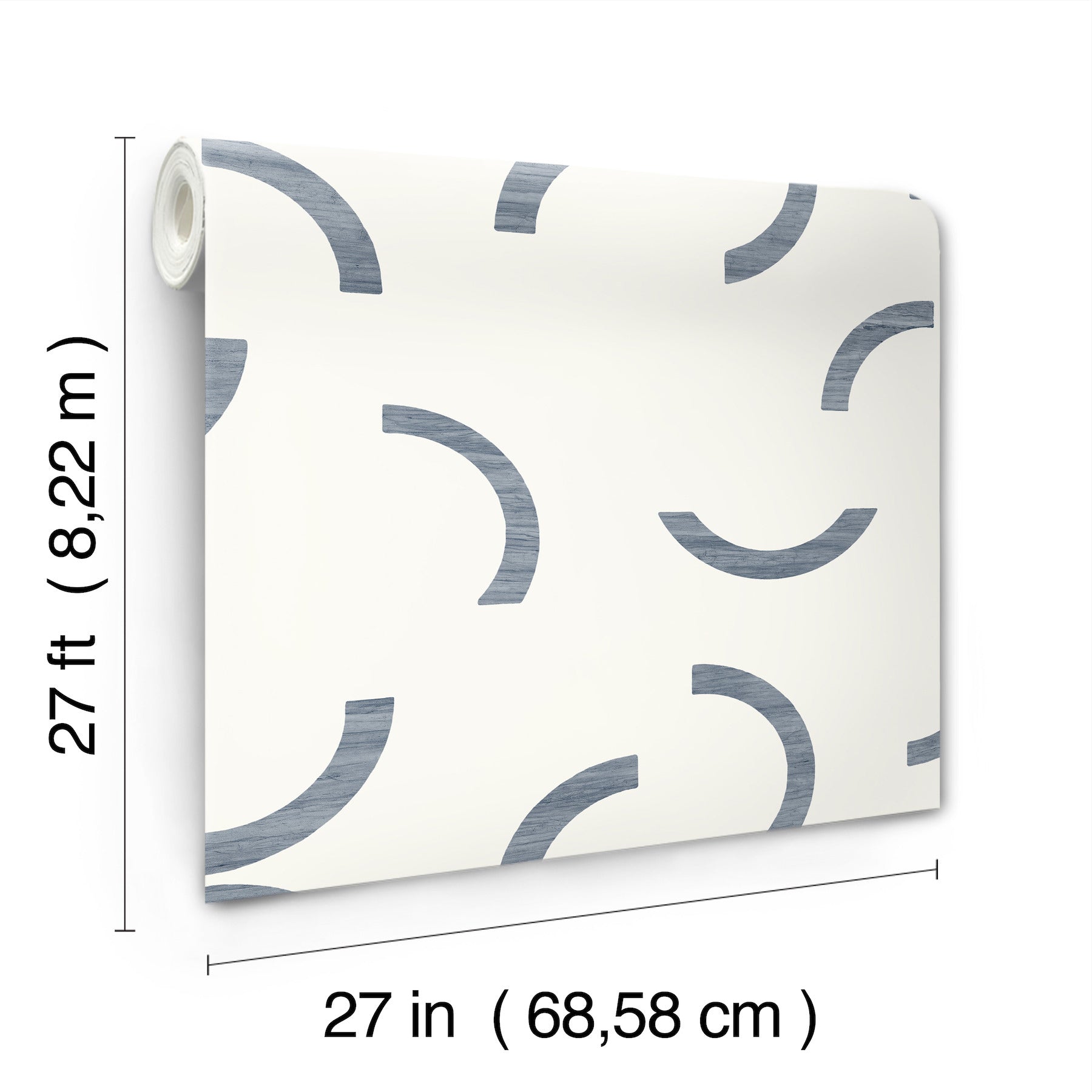 Use:This modern geometric design features a variety of thin crescents embellished with striated layers of monotone blues. This Lunula Wallpaper measures approximately 27 inches wide by 27 feet long, measuring approximately 60.8 square feet per roll. Textural, organic forms grounded in earthly inspiration.