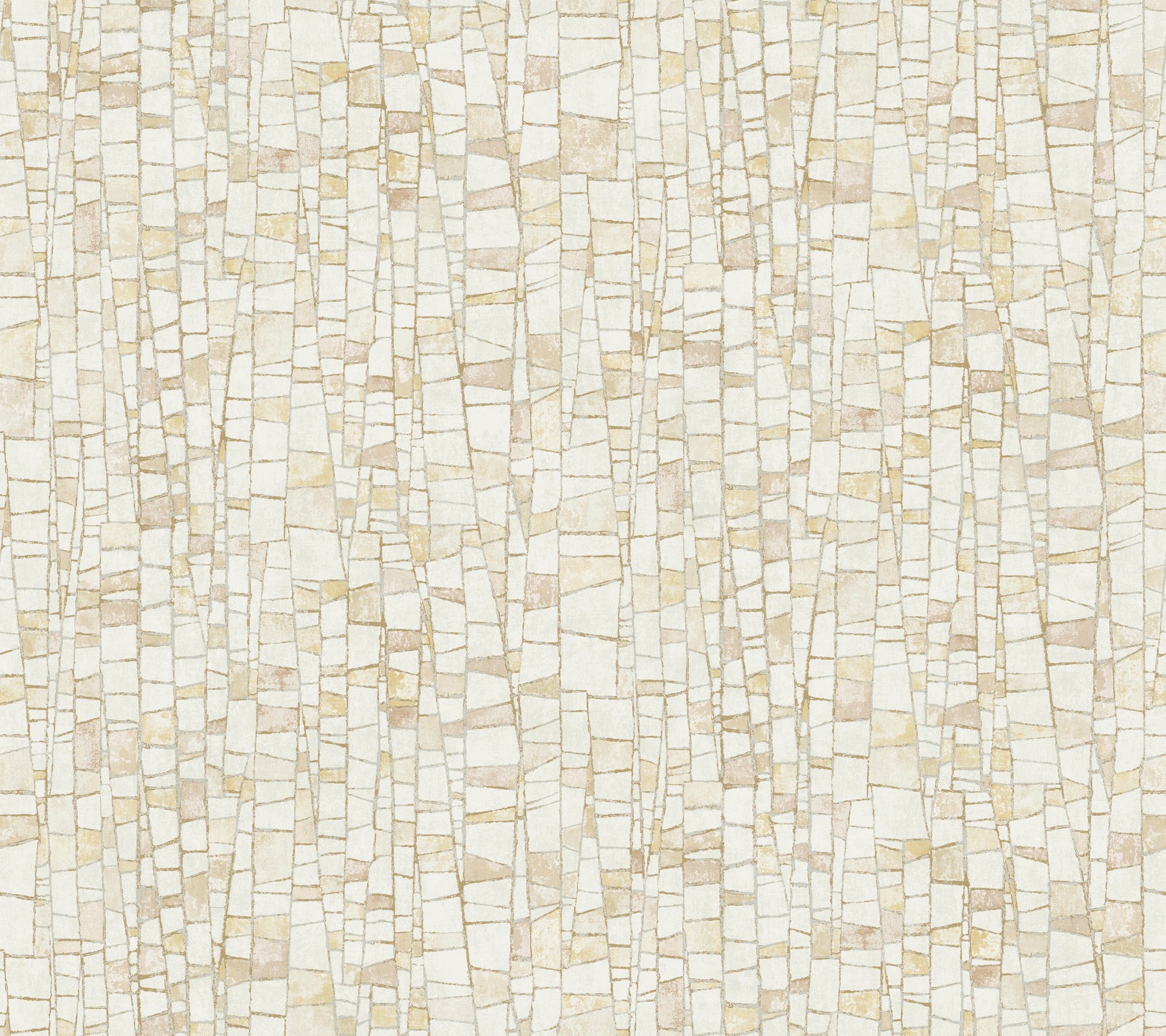 Use:The mosaic-like tiling of design Kaleidoscopic strikes the perfect balance of rustic and refined, featuring a variety of ochre, terracotta, and cream accented by metallic gold highlights. This Kaleidoscopic Wallpaper measures approximately 27 inches wide by 27 feet long, measuring approximately 60.8 square feet per roll. Textural, organic forms grounded in earthly inspiration.