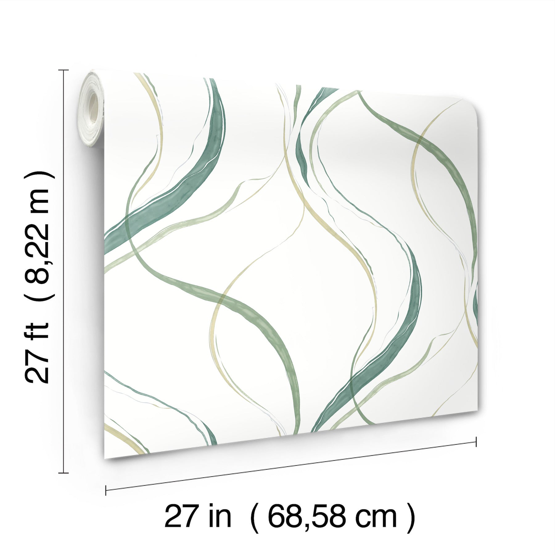 Use:Airy and ethereal, Ink Flow's swirling ribbons of green twirl close together and then part. This Ink Flow Wallpaper measures approximately 27 inches wide by 27 feet long, measuring approximately 60.8 square feet per roll. Textural, organic forms grounded in earthly inspiration.
