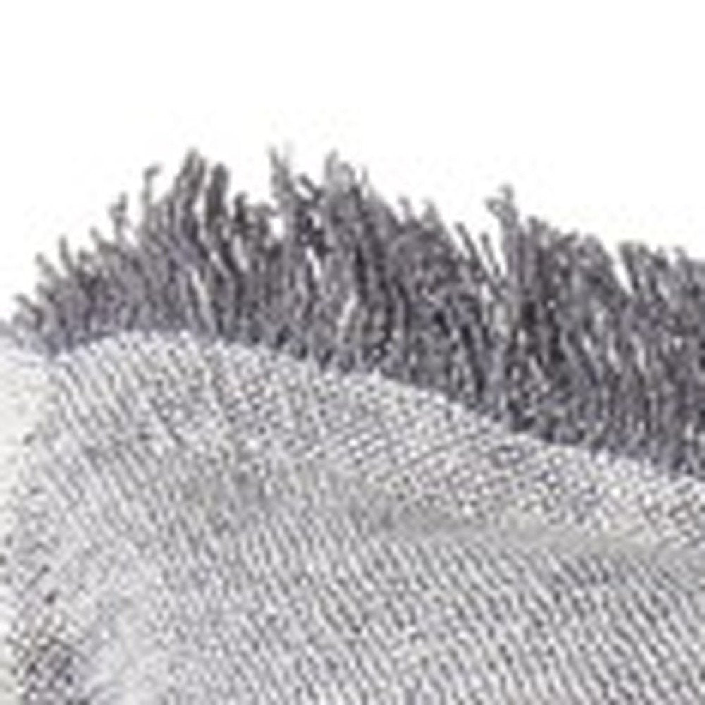 Fringed Blue And Beige Square Accent Pillow Cover