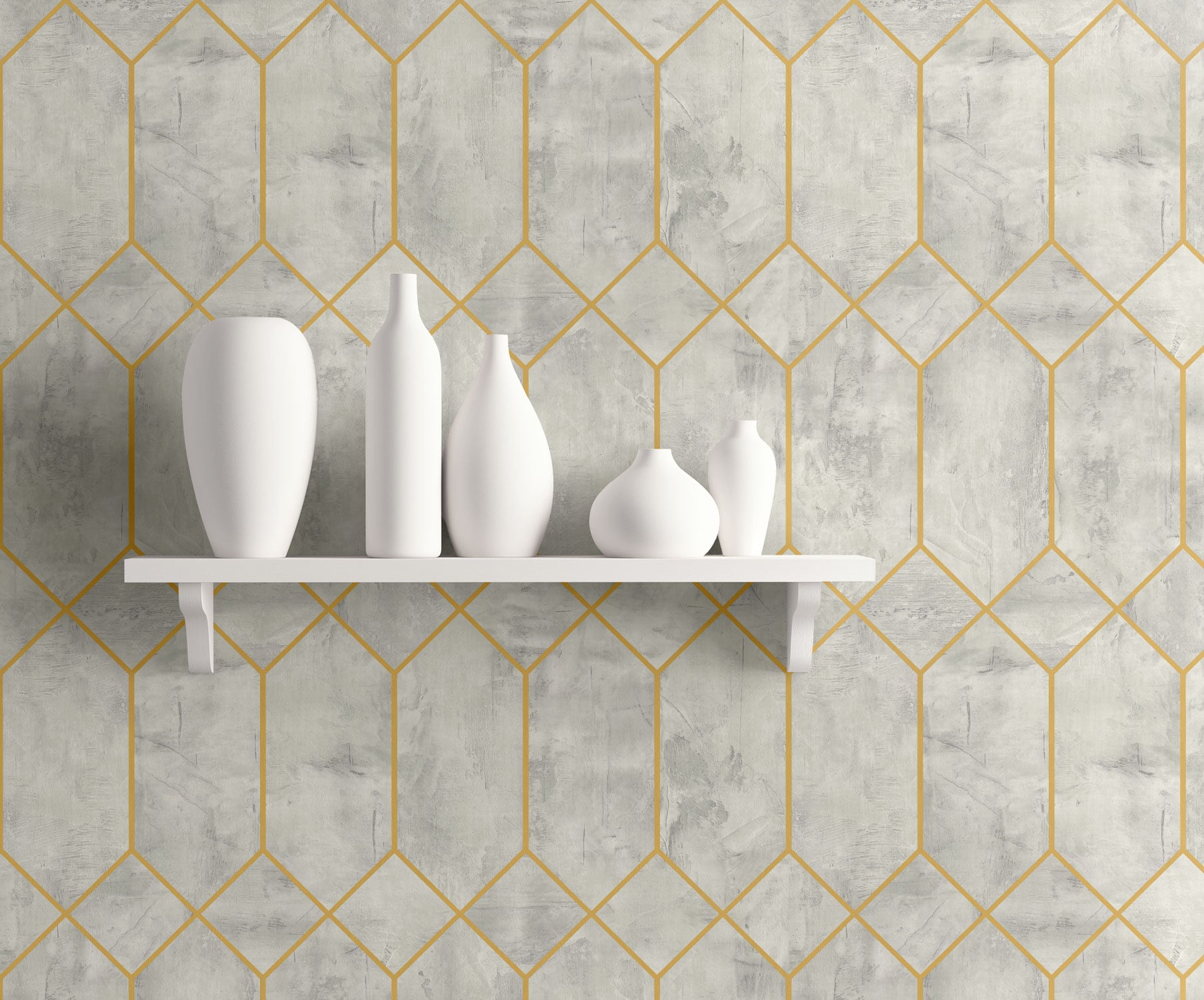 Seabrook Designs Living with Art Geo Faux Geometric Contemporary Grey Metallic - LW51610