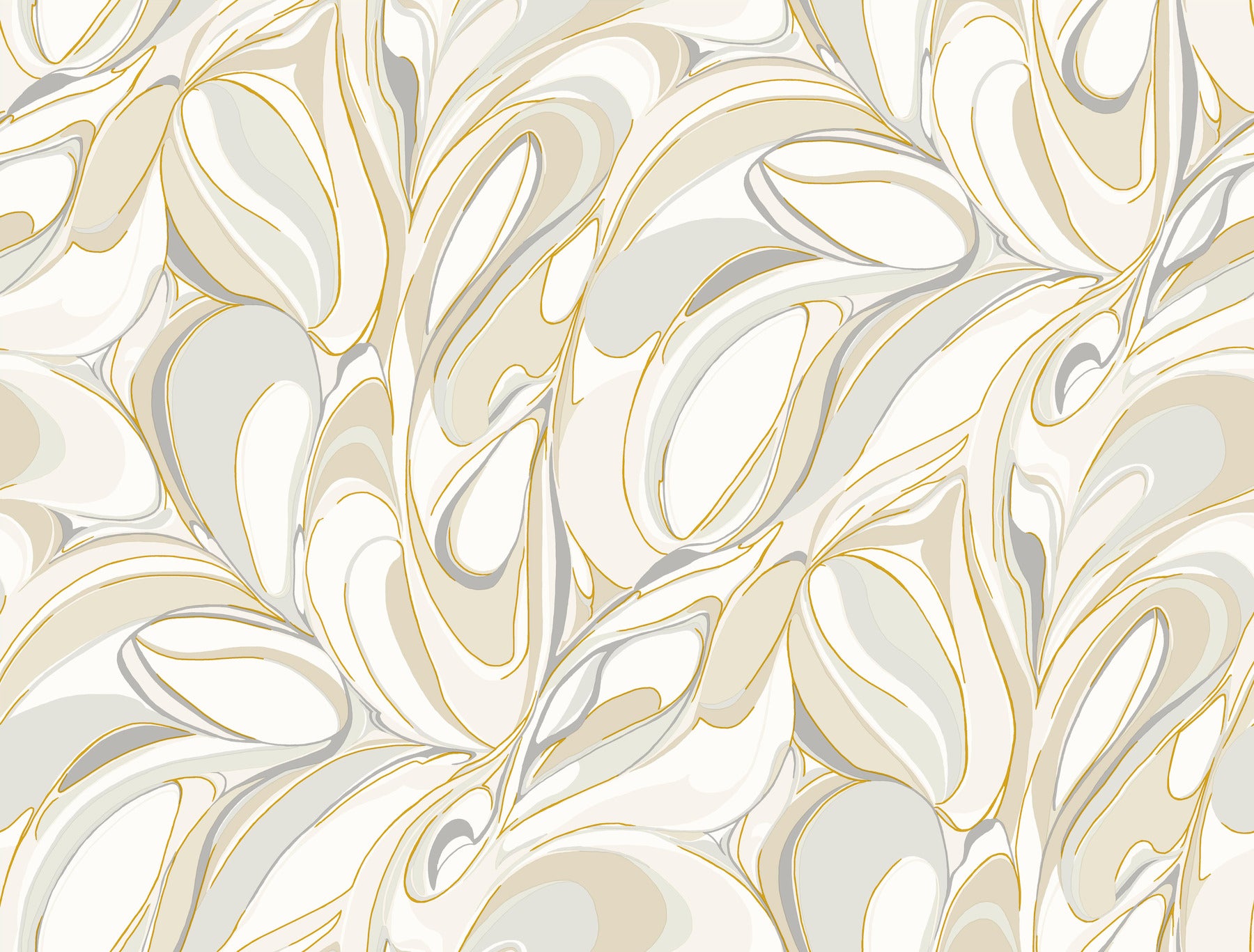 Use:Achate's organic swirls of marbled ink are elevated with thin metallic veins throughout. Seen here in a palette of beige, taupe, white, grey, and gold. This Achate Wallpaper measures approximately 27 inches wide by 27 feet long, measuring approximately 60.8 square feet per roll. The song of the forest echoes within the rich, earthen textures and greenery of this nature-inspired collection.
