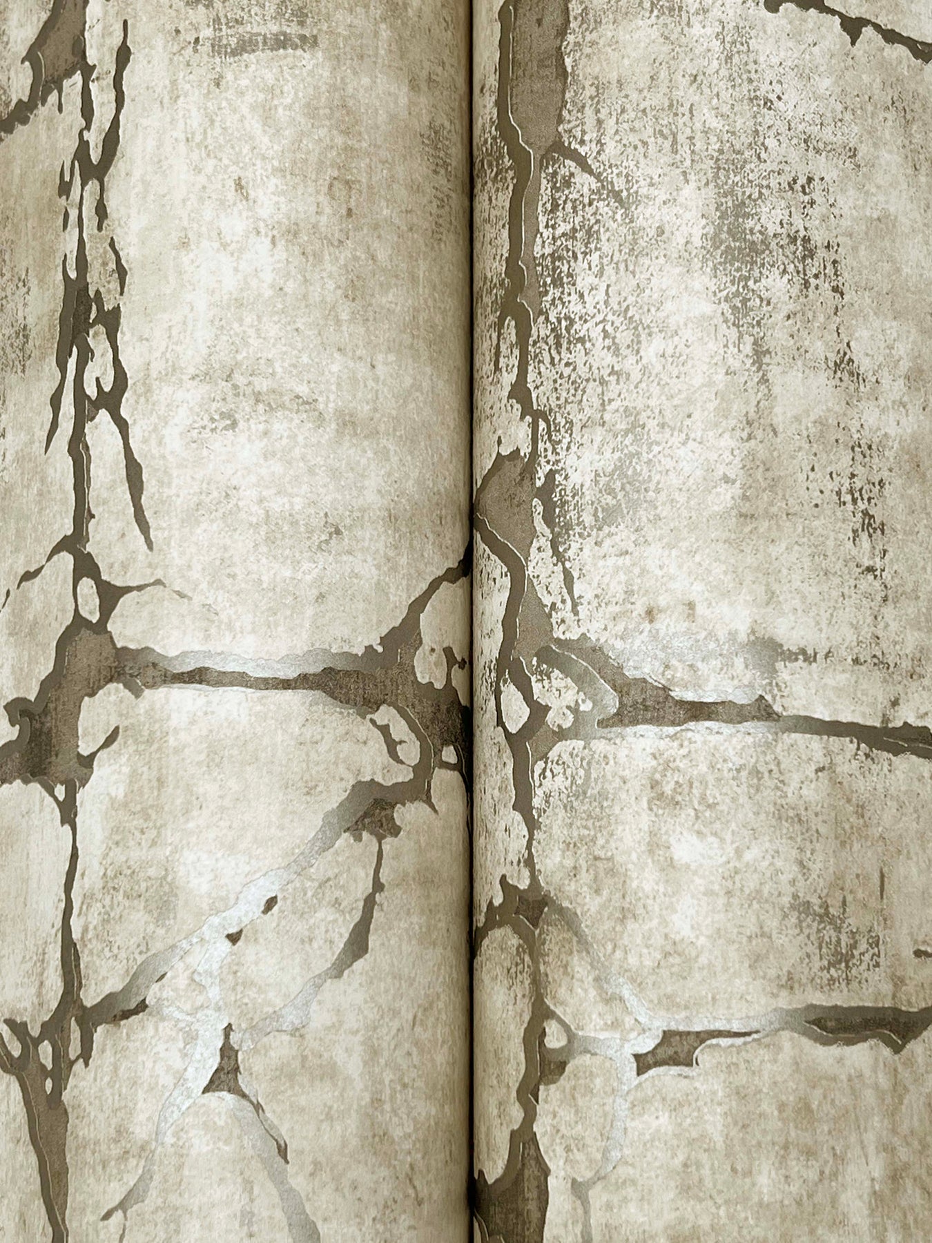 Use:Fissures in hard-packed earth showcase the beauty of durability in pattern Mojave. Featured here in taupe and charcoal with pewter accents. This Mojave Wallpaper measures approximately 27 inches wide by 27 feet long, measuring approximately 60.8 square feet per roll. The song of the forest echoes within the rich, earthen textures and greenery of this nature-inspired collection.