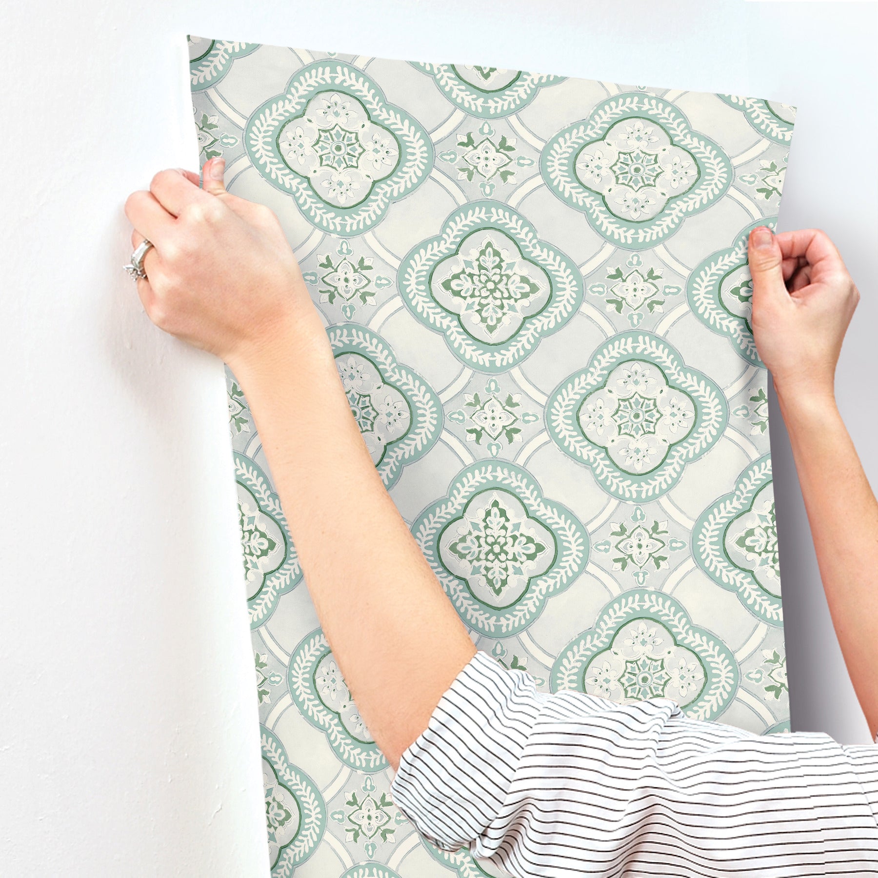 Use:Pattern Garden Trellis?s four-quarter tile of leaf, flower, and bud rests upon a diamond geometric in repeat. This Garden Trellis Wallpaper measures approximately 27 inches wide by 27 feet long, covering About 60.8 square feet per roll. Manufactured on SureStrip?, a unique high performance substrate, this ultra-easy removable wallpaper is guaranteed easy to install and easy to remove; simply use water to activate.