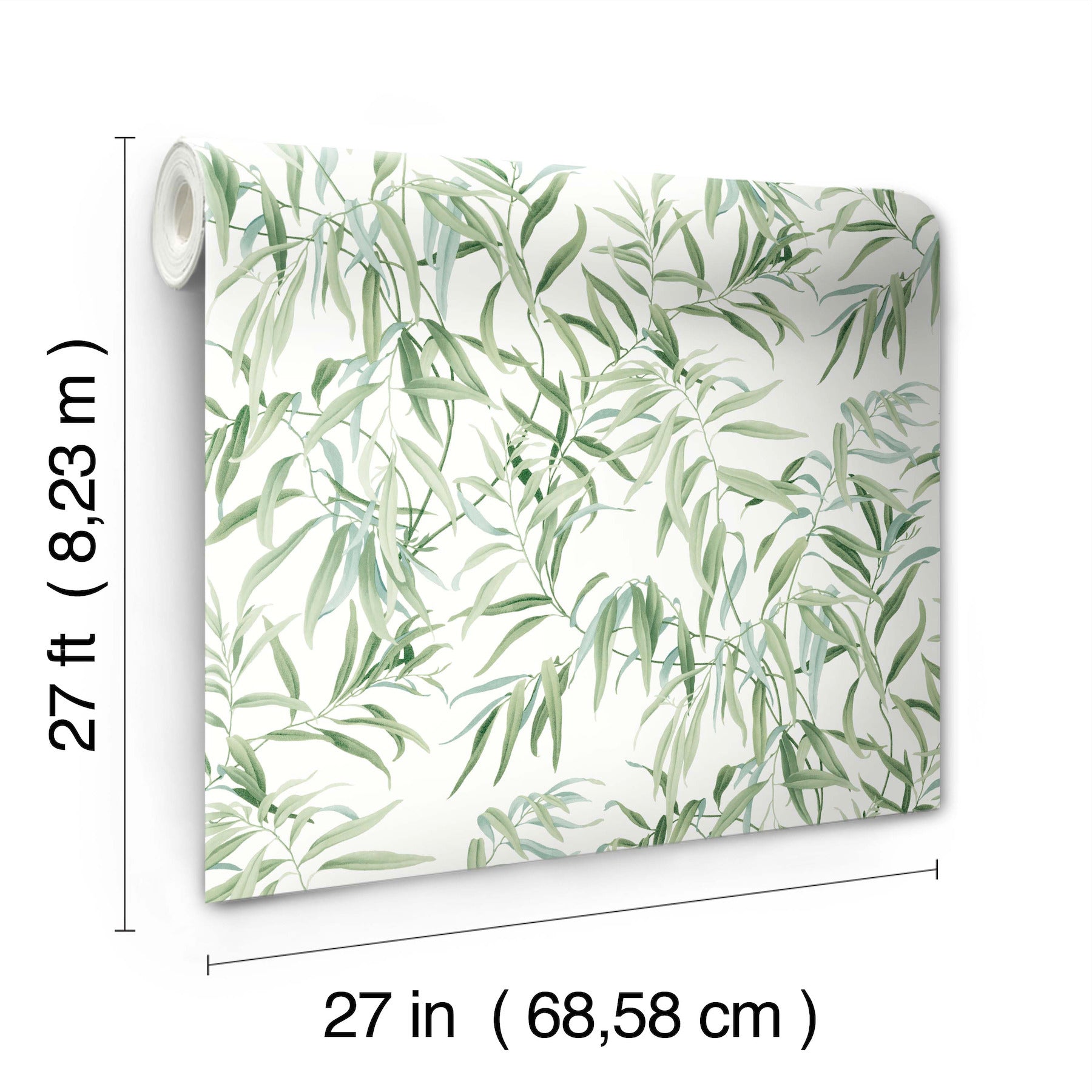 Use:The slender lines of the willow tree?s graceful branches create a bower of beautiful, natural leaves in pattern Willow Grove. This Willow Grove Wallpaper measures approximately 27 inches wide by 27 feet long, covering About 60.8 square feet per roll. Manufactured on SureStrip?, a unique high performance substrate, this ultra-easy removable wallpaper is guaranteed easy to install and easy to remove; simply use water to activate.