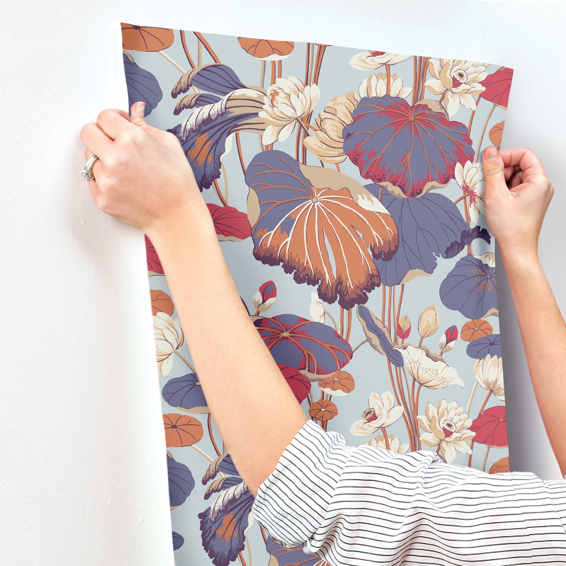Use:Asian images of a floating world filled with lily pads, lotus flowers, and still waters match Lily Pond's classic sophistication. This Lotus Pond Wallpaper measures approximately 27 inches wide by 27 feet long, covering About 60.8 square feet per roll. Manufactured on SureStrip?, a unique high performance substrate, this ultra-easy removable wallpaper is guaranteed easy to install and easy to remove; simply use water to activate.