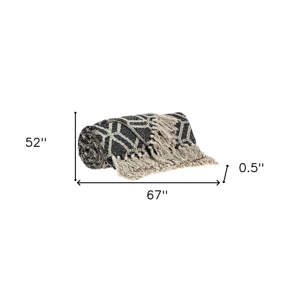 Grey and Beige Handloom Geometric Woven Throw Blanket