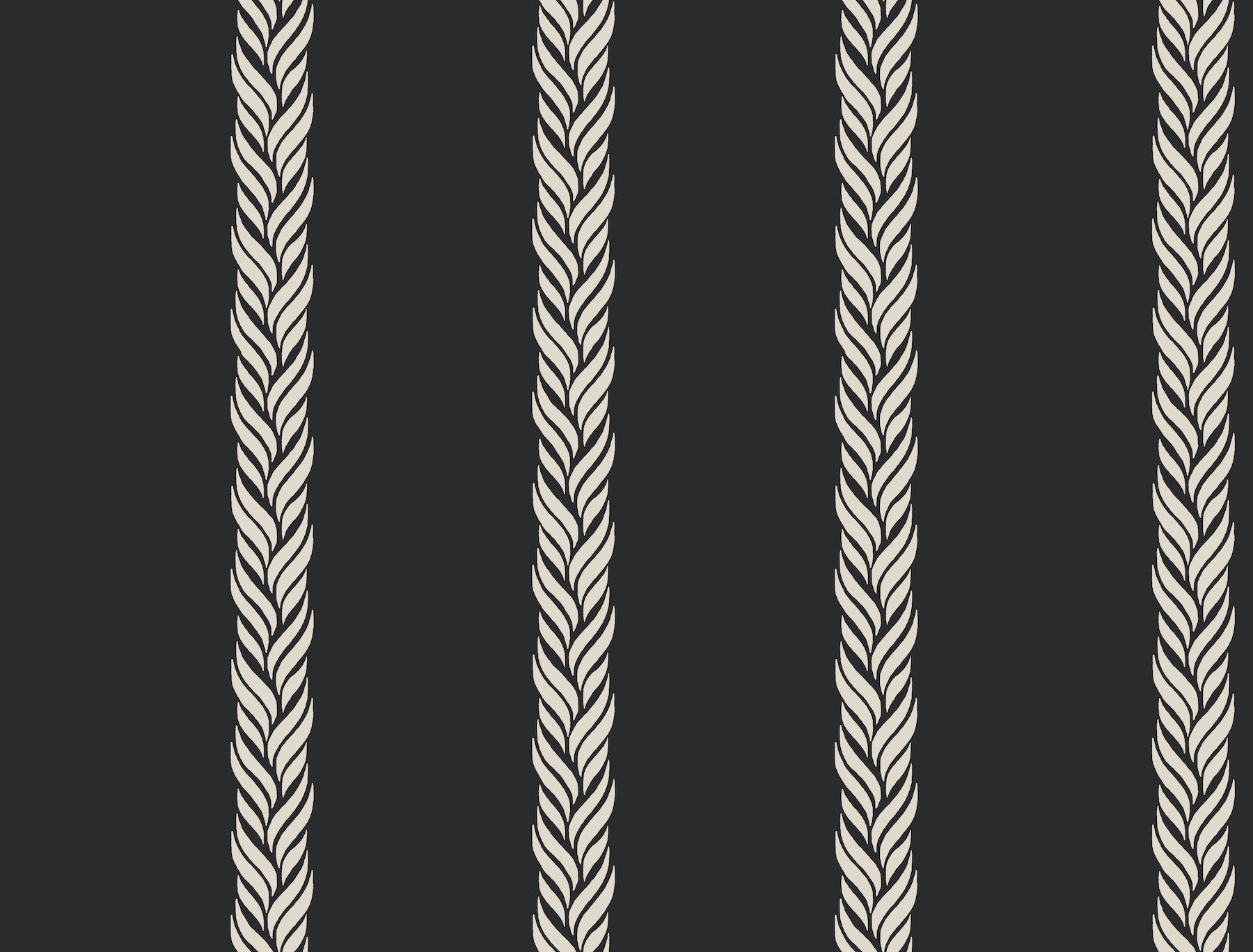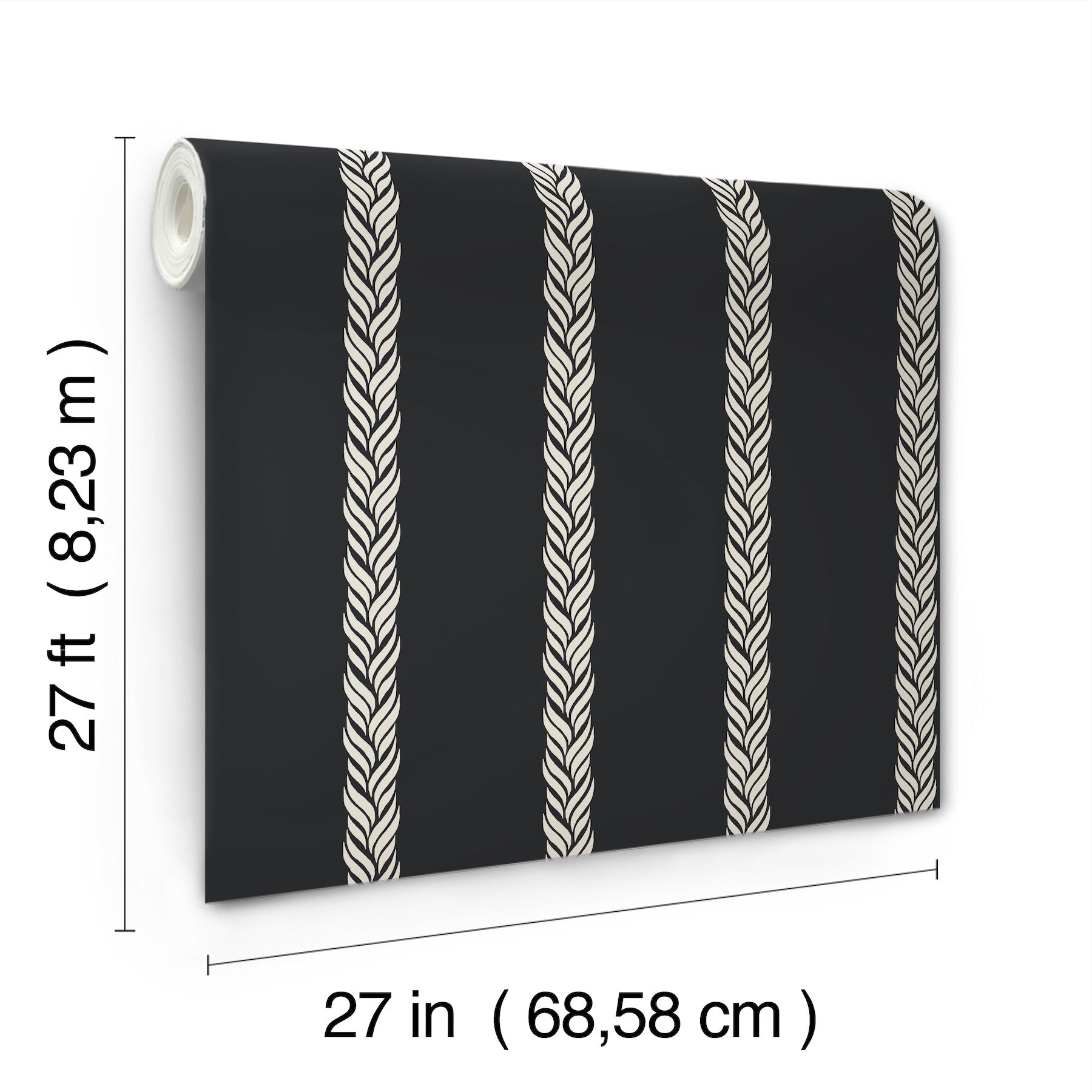Use:The silhouette of a deeply textured broad Braided Stripe is printed to emulate a hand-painted artisan application, shown here in white on midnight black. This Braided Stripe Wallpaper measures approximately 27 inches wide by 27 feet long, measuring approximately 60.8 square feet per roll. The distinction of timeless style.