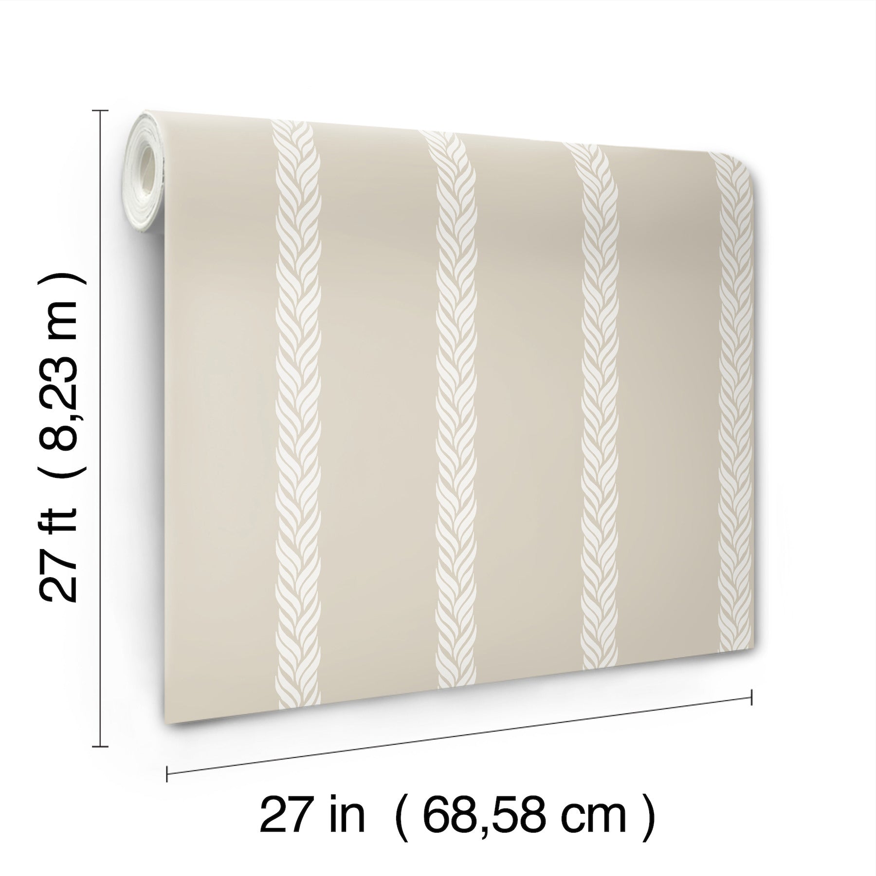 Use:The silhouette of a deeply textured broad Braided Stripe is printed to emulate a hand-painted artisan application, shown here in white on neutral beige. This Braided Stripe Wallpaper measures approximately 27 inches wide by 27 feet long, measuring approximately 60.8 square feet per roll. The distinction of timeless style.