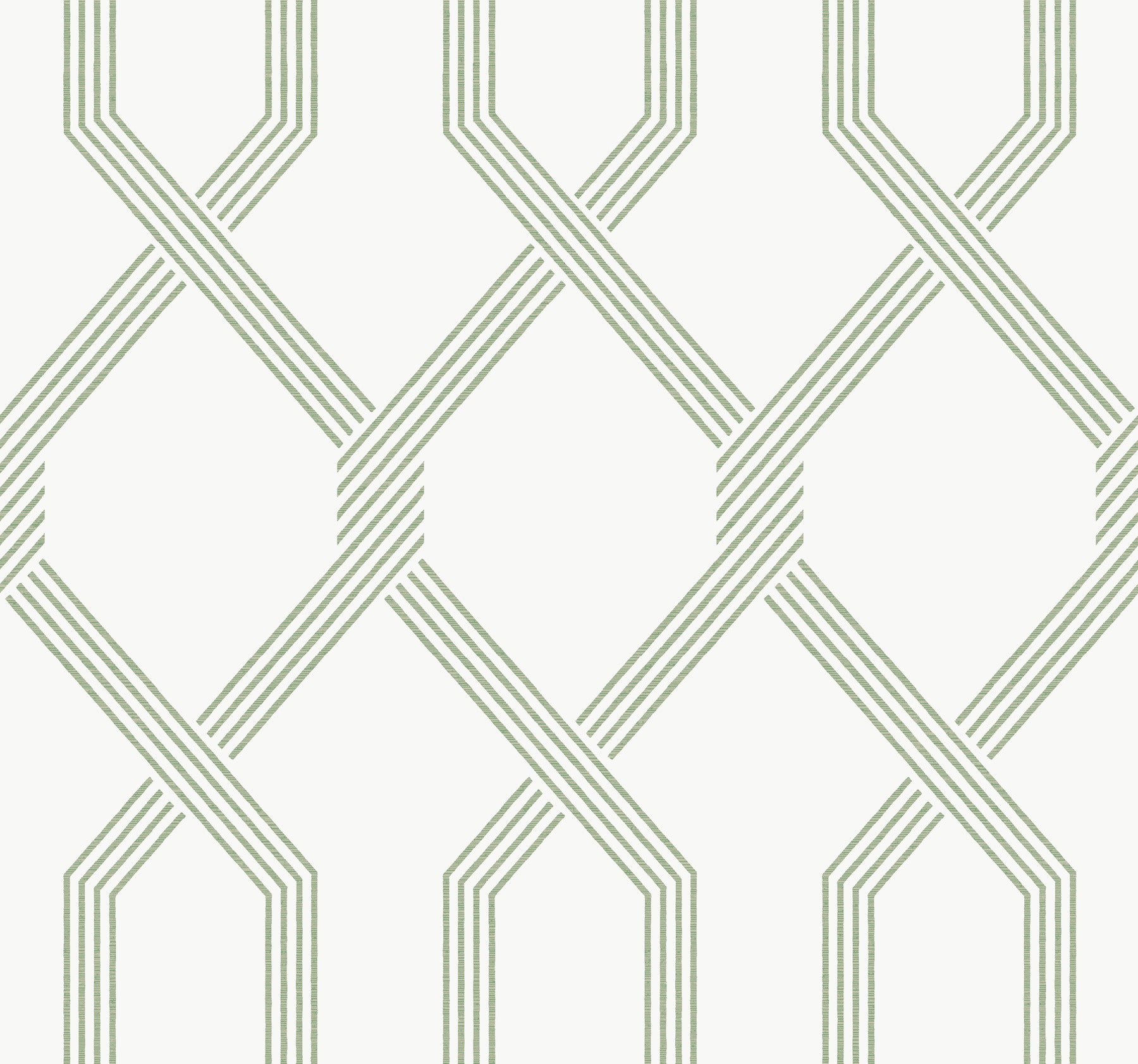 Use:Oversized diamonds within Palisade form as the geometric crossing of lines twist into a ribbon of angled stripes, shown in emerald green on white. This Palisade Wallpaper measures approximately 27 inches wide by 27 feet long, measuring approximately 60.8 square feet per roll. The distinction of timeless style.