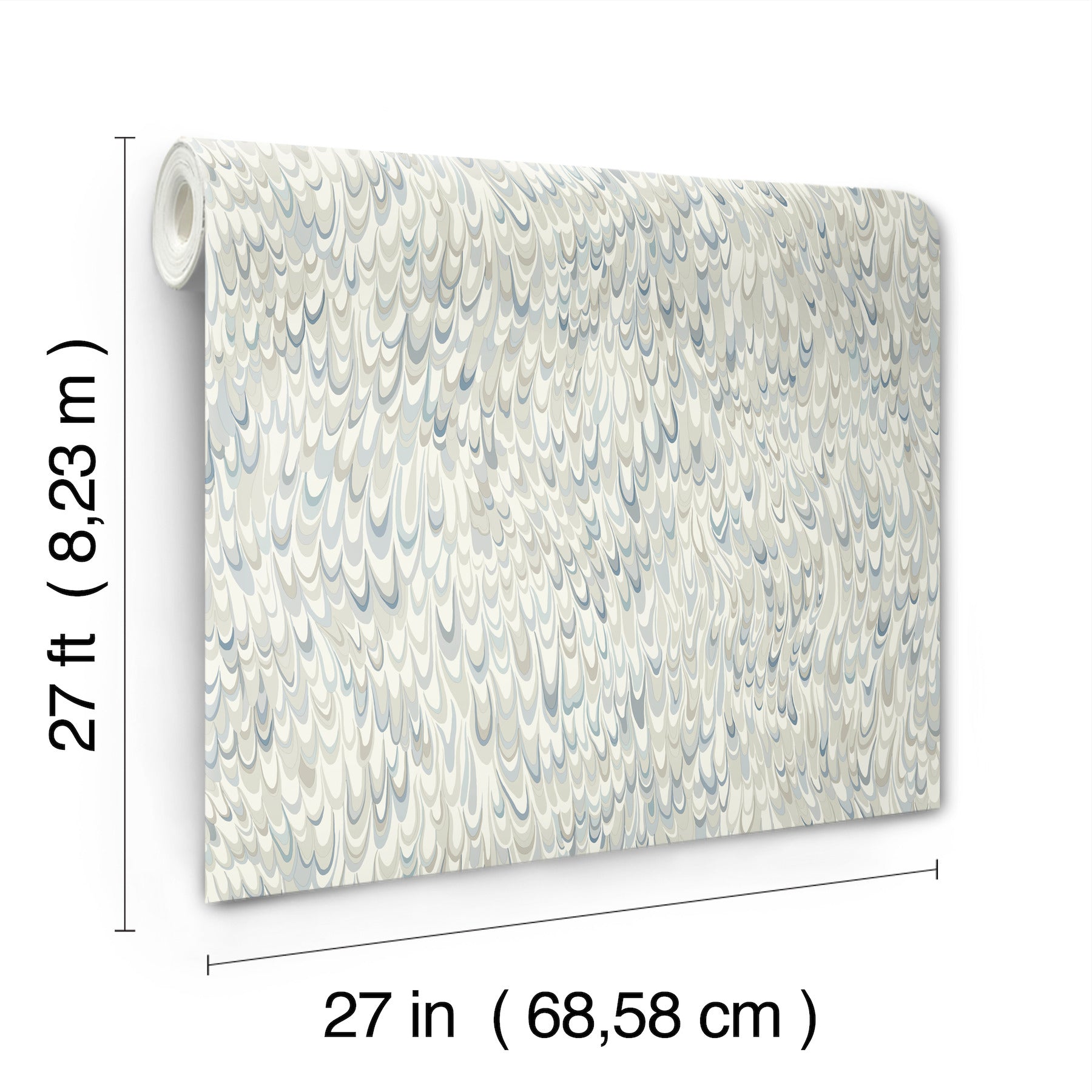 Use:The craft of marbling paper inspires the motion and artistry of pattern Aslan, shown in ocean blue, greys, and neutrals on off-white. This Aslan Wallpaper measures approximately 27 inches wide by 27 feet long, measuring approximately 60.8 square feet per roll. The distinction of timeless style.