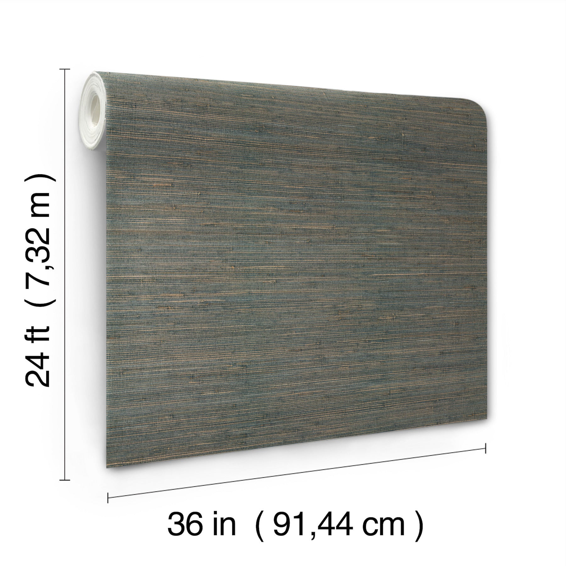 York Wallcoverings Grasscloth and Natural Resource Knotted Grass Dark Teal Wallpaper Traditional Grasscloth Blues - GV0234