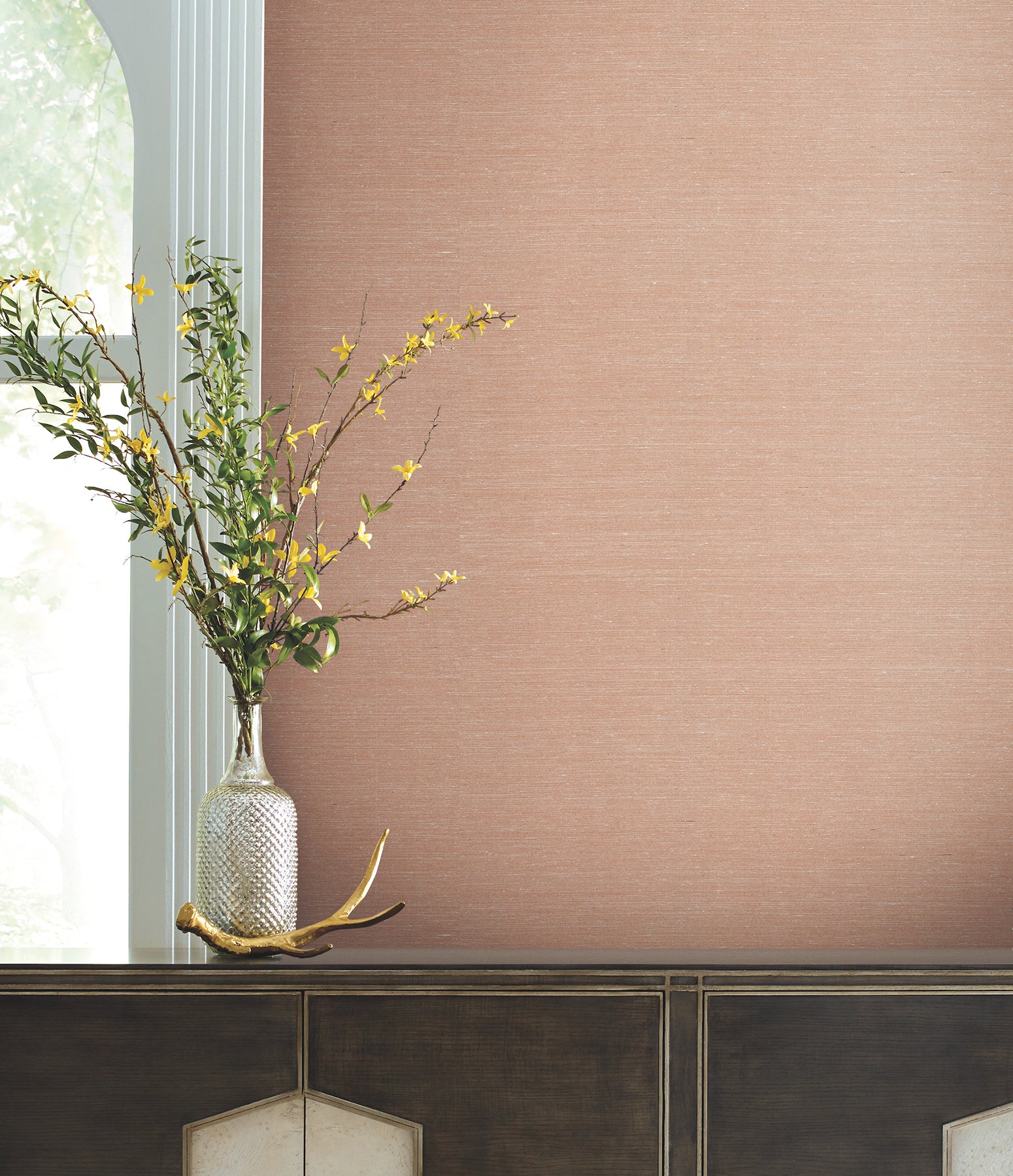 Use:Fine metallic and matte fibers shape the intricate grasscloth weave of the pattern Delicate Abaca, shown in brick red with gold metallic. This Delicate Abaca Wallpaper measures approximately 36 inches wide by 24 feet long, measuring approximately 72 square feet per roll. A curated showcase of???luxurious natural materials. Discover grasscloth in every hue and texture alongside embellished wood veneers and naturally brilliant mica.