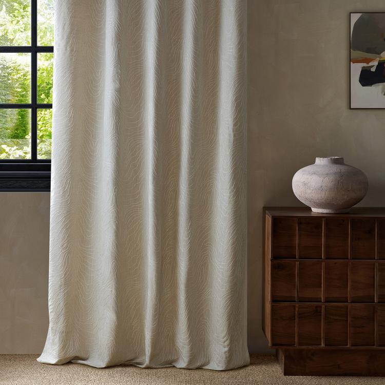 Use:A graphic contour fabric design enhanced by a shimmering metallic cording.