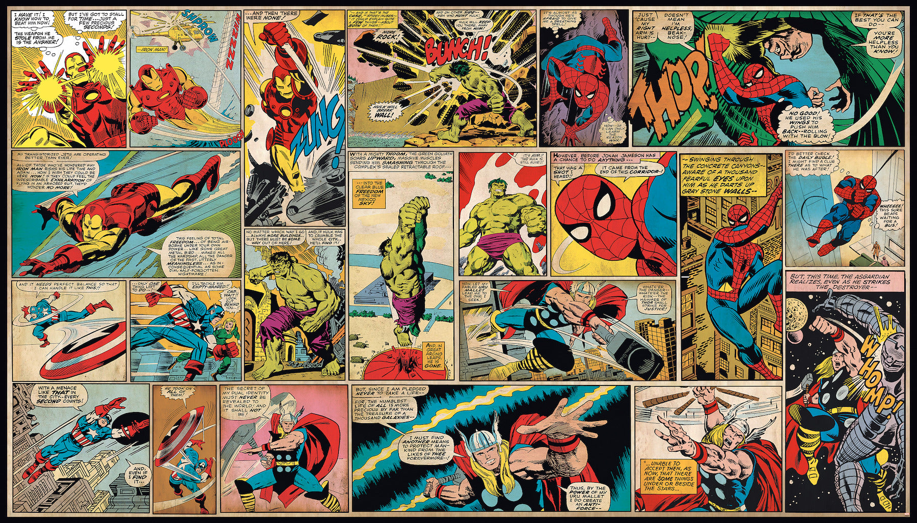 Use:Scenes from your favorite Marvel comics meet fast, fun and affordable room decor with this Marvel Comics XL Wallpaper Mural by RoomMates decor. Featuring thrilling scenes ripped straight from your favorite comic books, this Marvel Comics wall mural exhilarates any room. Designed with all of your favorite Marvel superheroes including Spider-Man, Captain America, Thor and many more, the assembling process is easy! Spray each of the seven panels with water and add each panel side-by-side on the surface of your choice.