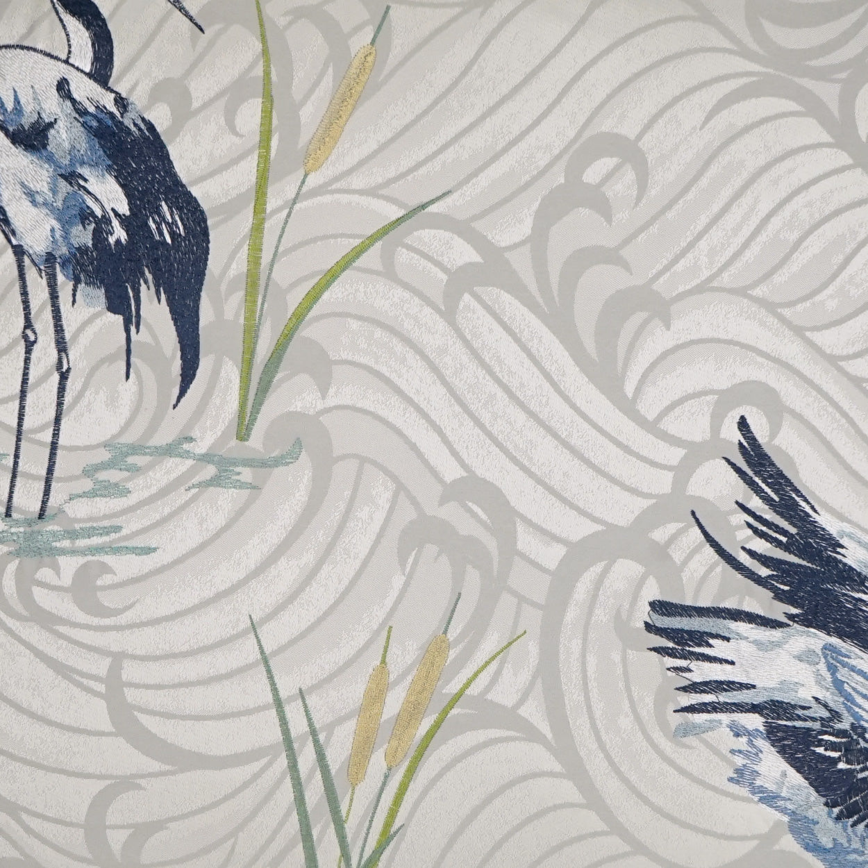 D.V. KAP HOME 3596-YARD Kanji Fabric Novelty, Embroidery Blue, Silver - Kanji