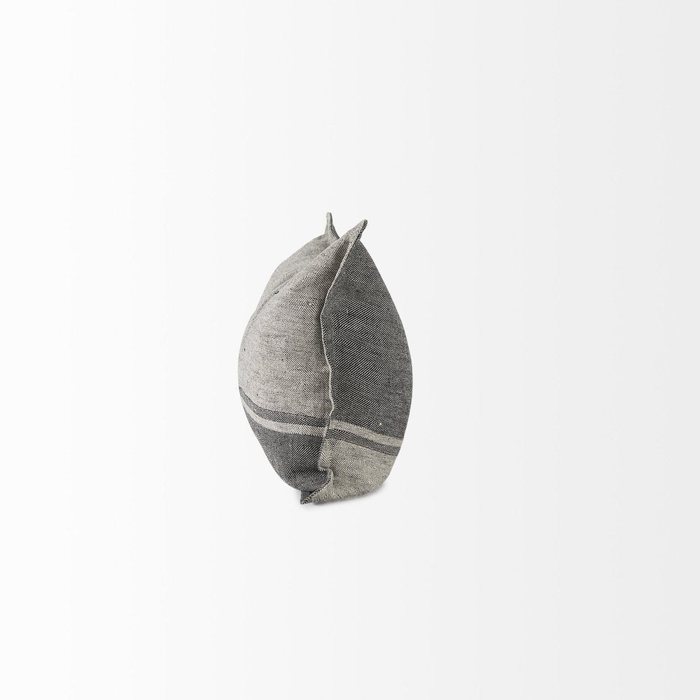 14" X 26" Dark Gray And Light Gray Striped Linen Lumbar Throw Pillow Cover