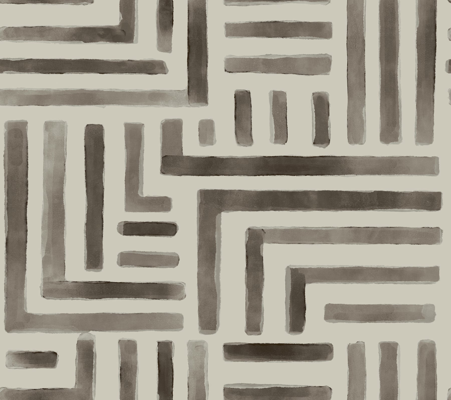 Use:The meditative watercolor effect elicited by Painterly Labyrinth recreates the complex geometric structure of an ancient maze shown in dark neutral beige. This Painterly Labyrinth Wallpaper measures approximately 27 inches wide by 27 feet long, measuring approximately 60.8 square feet per roll. A retrospective from the private collections of Christiane Lemieux featuring global, artistic, and?¨handcrafted designs.
