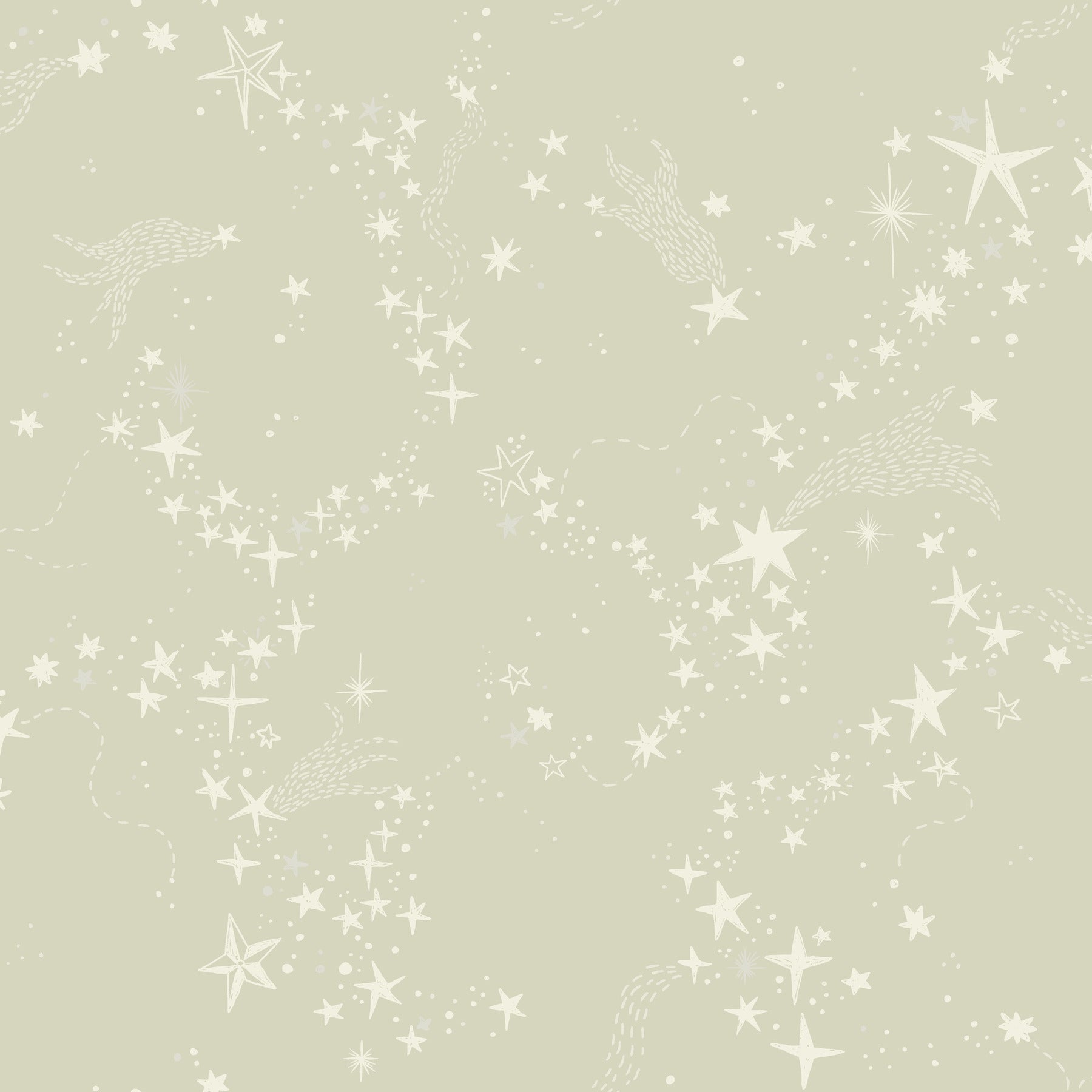 Use:Stare up at the stars to your heart's content with this illustrative night sky wallpaper. The heavens seem to swirl and dance, with shooting stars streaking across the sparkling horizon. Pictured here in pale sage and white with subtle metallic accents. This Stjarnhimmel Wallpaper measures approximately 20.9 inches wide by 33 feet long, measuring approximately 57.5 square feet per roll. Embark on a journey bursting with child-like wonder with Lina Schnaufer's collection, Daydream. The trip around the world features explorations on hot air balloons, train rides through the mountains, trips to the circus, and other whimsical adventures.