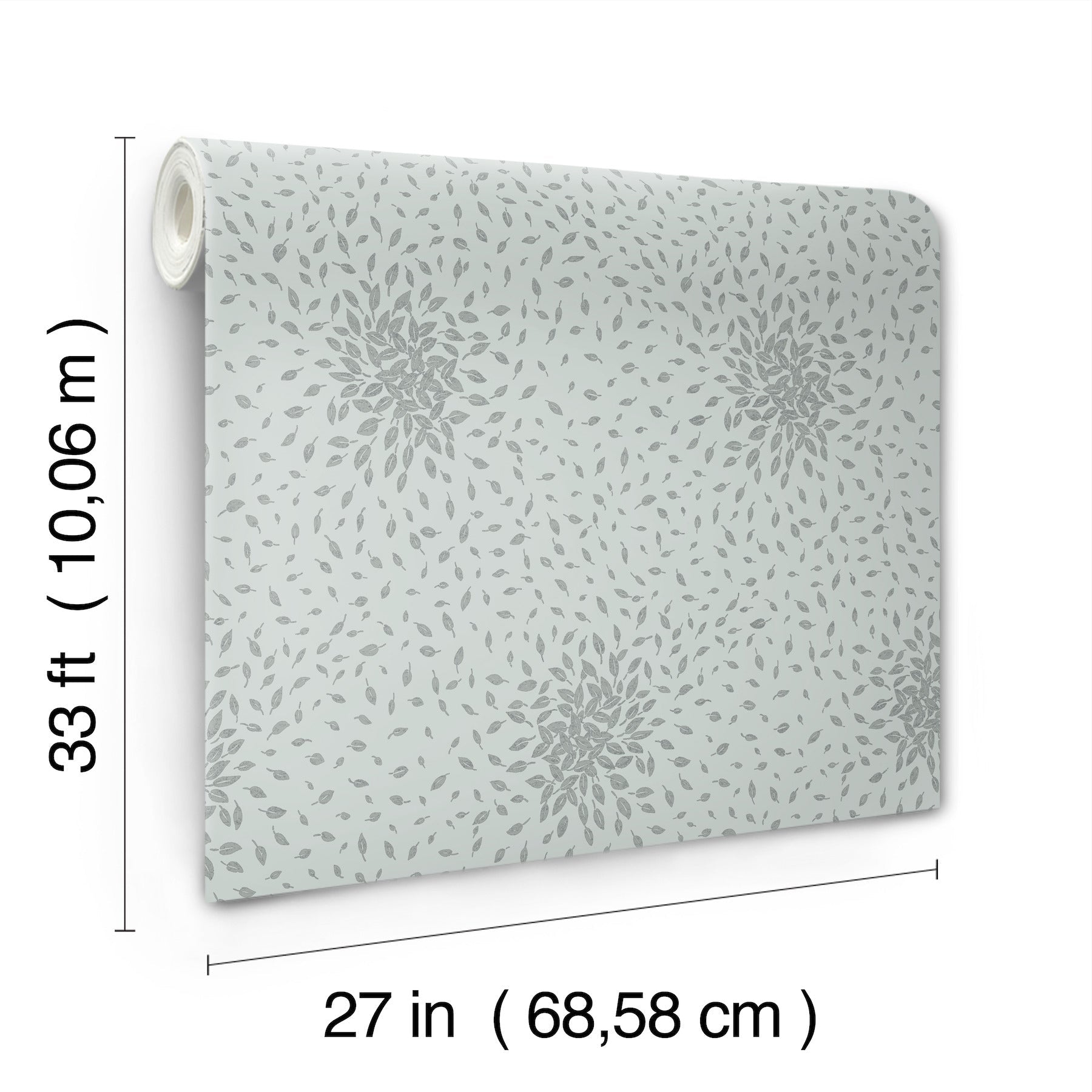 Use:A bluster and flurry of metallic shapes are created by the swirling silhouette pattern of Petite Leaves, shown in spa blue with silver metallic. This Petite Leaves Wallpaper measures approximately 27 inches wide by 26.9 feet long, measuring approximately 60.5 square feet per roll. The long awaited follow-up to the popular first release, Modern Metals Second Edition energizes contemporary spaces with charismatic visual artistry defined by the allure of luminous metallic.