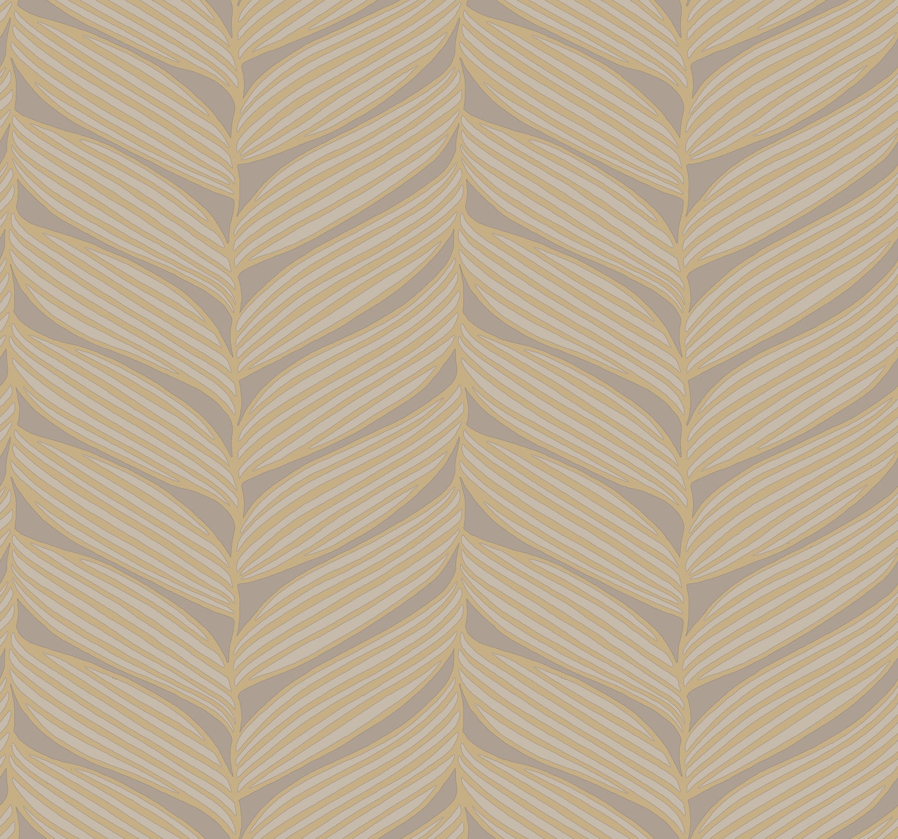 York Wallcoverings Antonina Vella Modern Metals Second Edition Luminous Leaves Grey and Gold Wallpaper Tropical Browns - MD7164