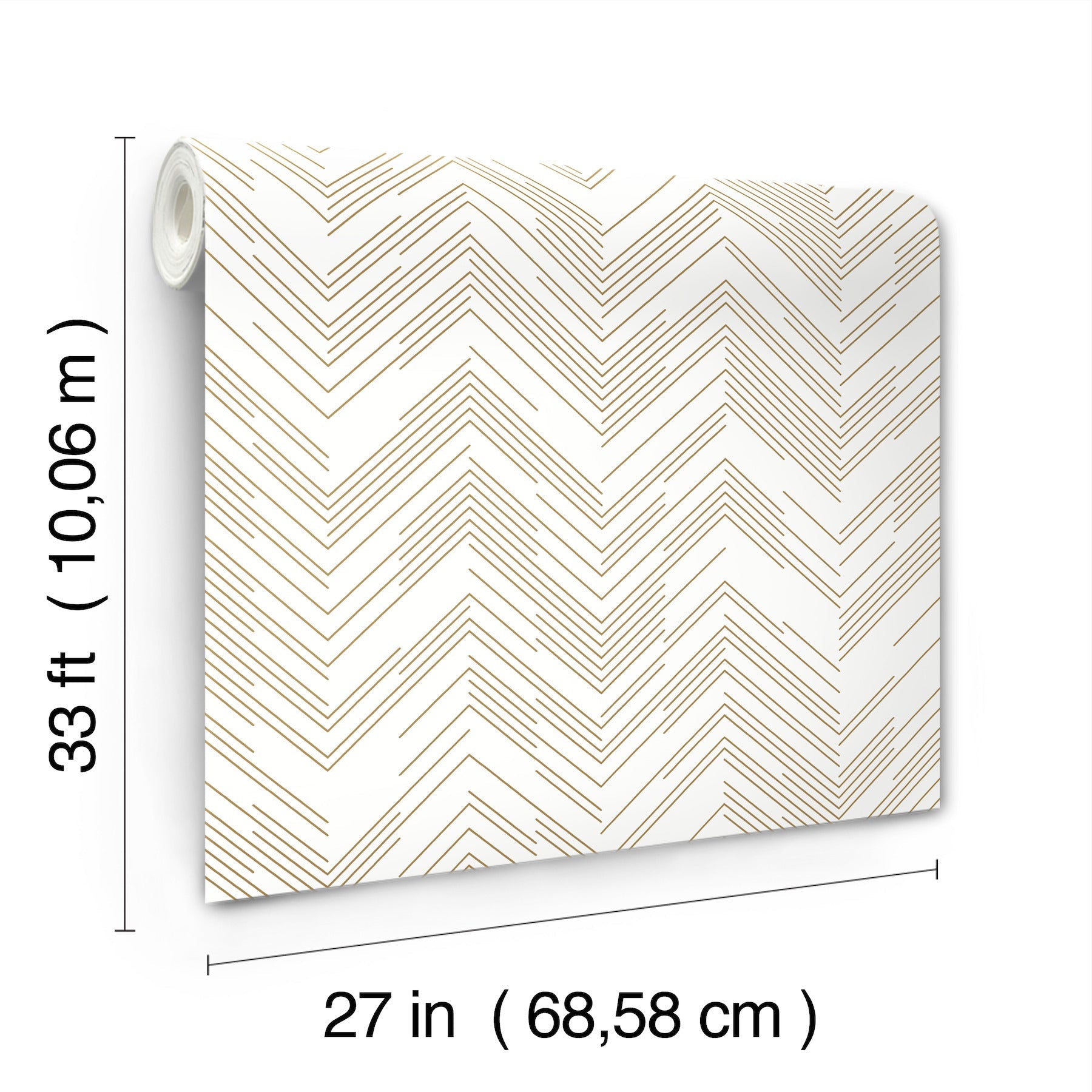Use:The suggestion of a geometric metallic pattern, Polished Chevron provides an unexpected break from the conformity of style, shown in snow white with bright gold metallic. This Polished Chevron Wallpaper measures approximately 27 inches wide by 26.9 feet long, measuring approximately 60.5 square feet per roll. The long awaited follow-up to the popular first release, Modern Metals Second Edition energizes contemporary spaces with charismatic visual artistry defined by the allure of luminous metallic.