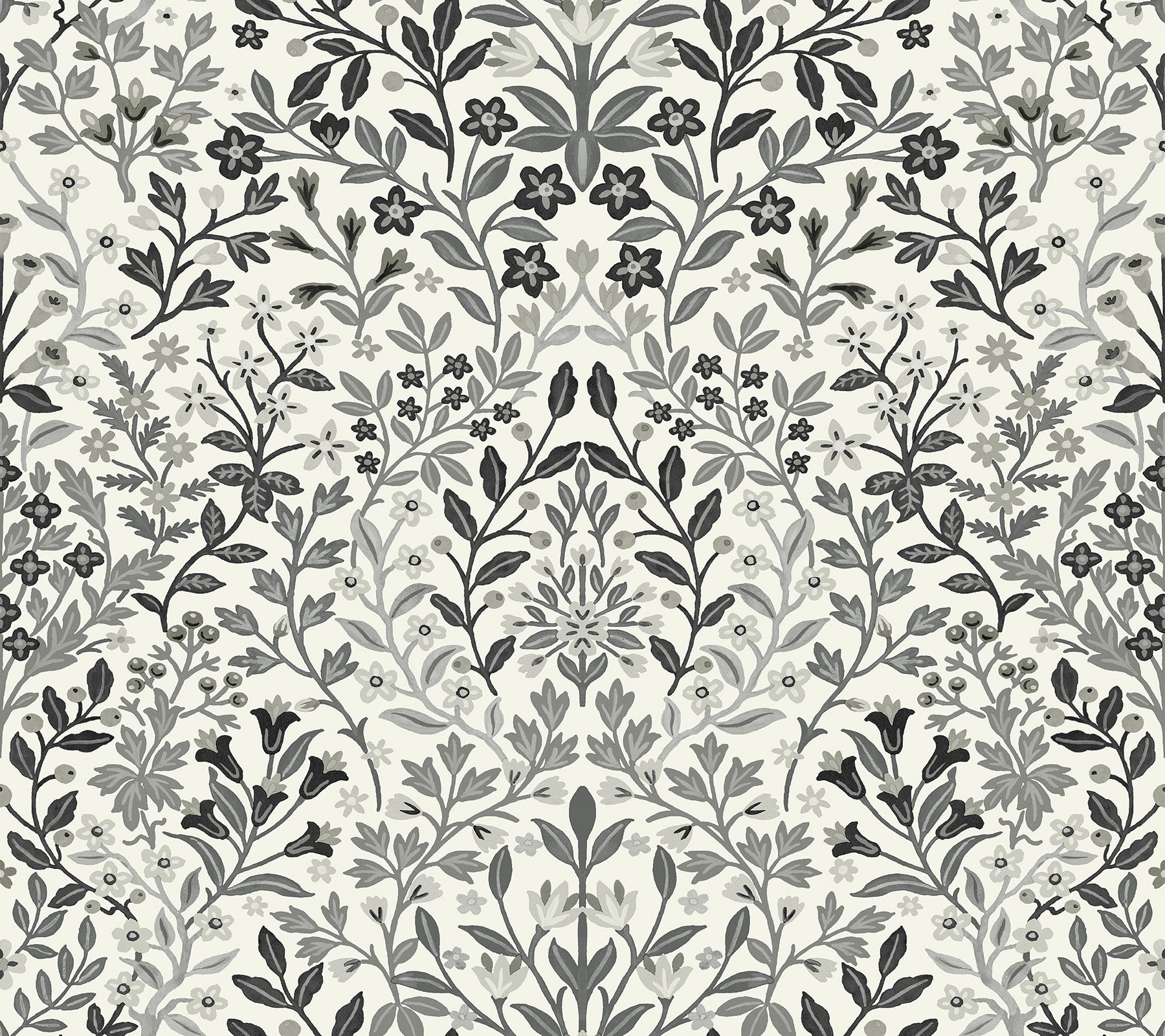 Use:Wildflowers bloom amid vines lined with berries and foliage, putting nature on display in playful, curved waves. Featuring a refined palette of greys and black against white. This Garden Terrace Wallpaper measures approximately 27 inches wide by 27 feet long, measuring approximately 60.8 square feet per roll. This collection of timeless wallcoverings is layered with warmth and charm, and effortlessly blends nostalgic patterns with modern designs.?¨This assortment has a little bit of everything?simple stripes, subtle plaids, vintage motifs, and bold florals.