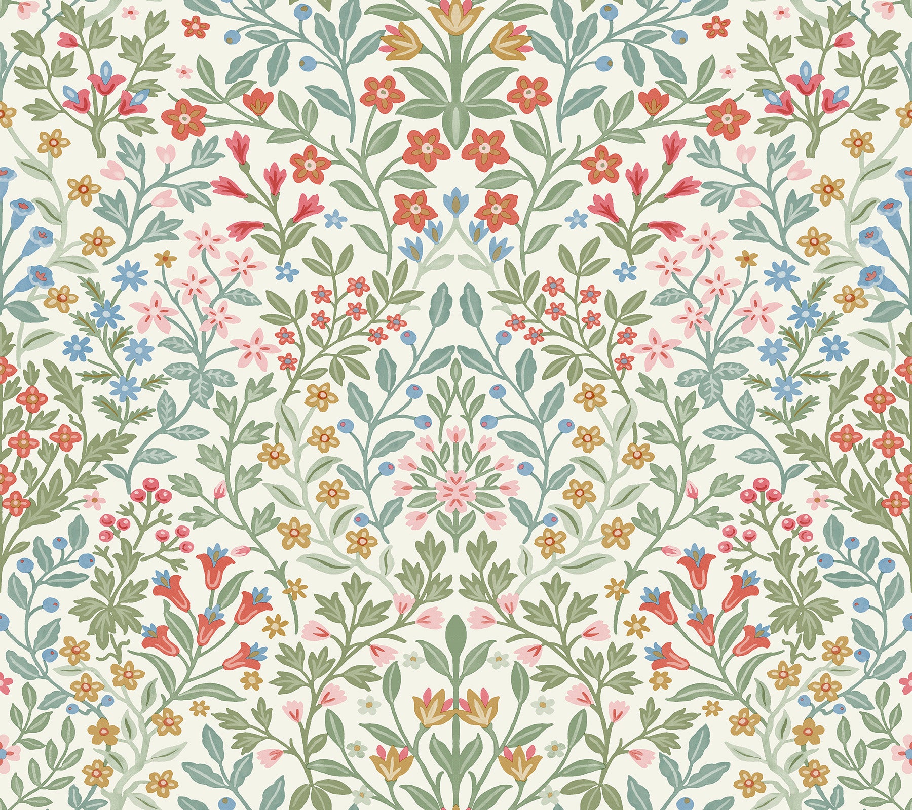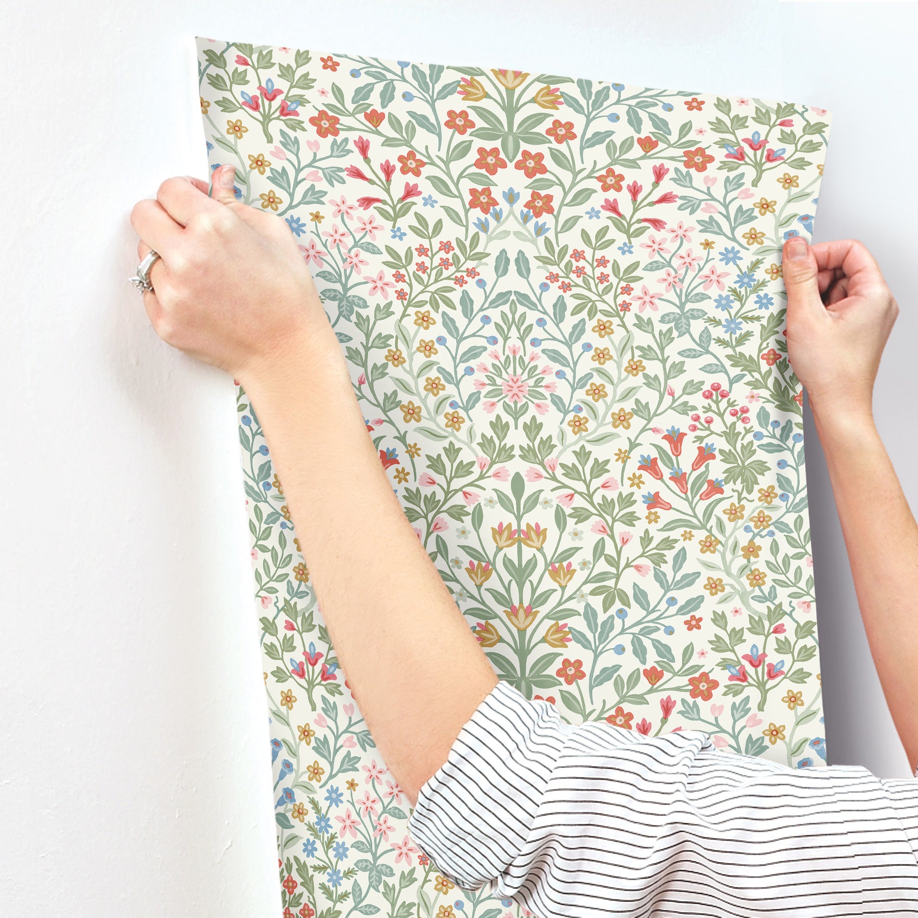 Use:Wildflowers bloom amid vines lined with berries and foliage, putting nature on display in playful, curved waves. Featuring a vibrant palette of pinks, yellows, greens, and blues against white. This Garden Terrace Wallpaper measures approximately 27 inches wide by 27 feet long, measuring approximately 60.8 square feet per roll. This collection of timeless wallcoverings is layered with warmth and charm, and effortlessly blends nostalgic patterns with modern designs.?¨This assortment has a little bit of everything?simple stripes, subtle plaids, vintage motifs, and bold florals.