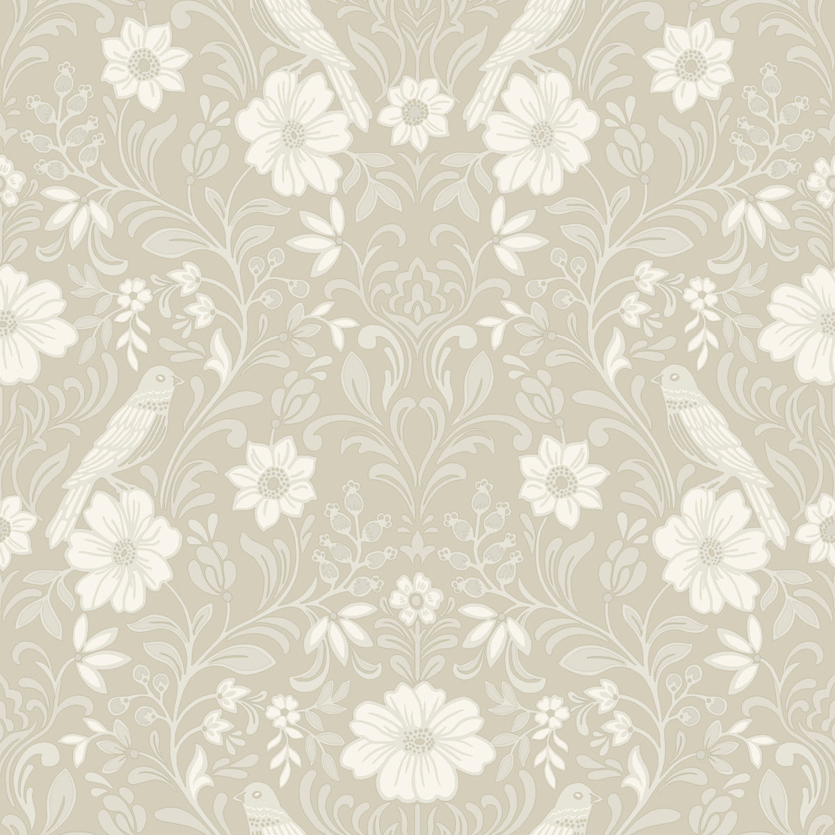 Use:Sparrows perch on flourishing blooms amid rich vines and ripe berries in this delightful woodland damask wallpaper.ring white and pale grey detailing against a taupe backdrop.??? This Colette Wallpaper measures approximately 20.5 inches wide by 33 feet long, measuring approximately 56.4 square feet per roll. This collection of timeless wallcoverings is layered with warmth and charm, and effortlessly blends nostalgic patterns with modern designs.s assortment has a little bit of everything,simple stripes, subtle plaids, vintage motifs, and bold florals.