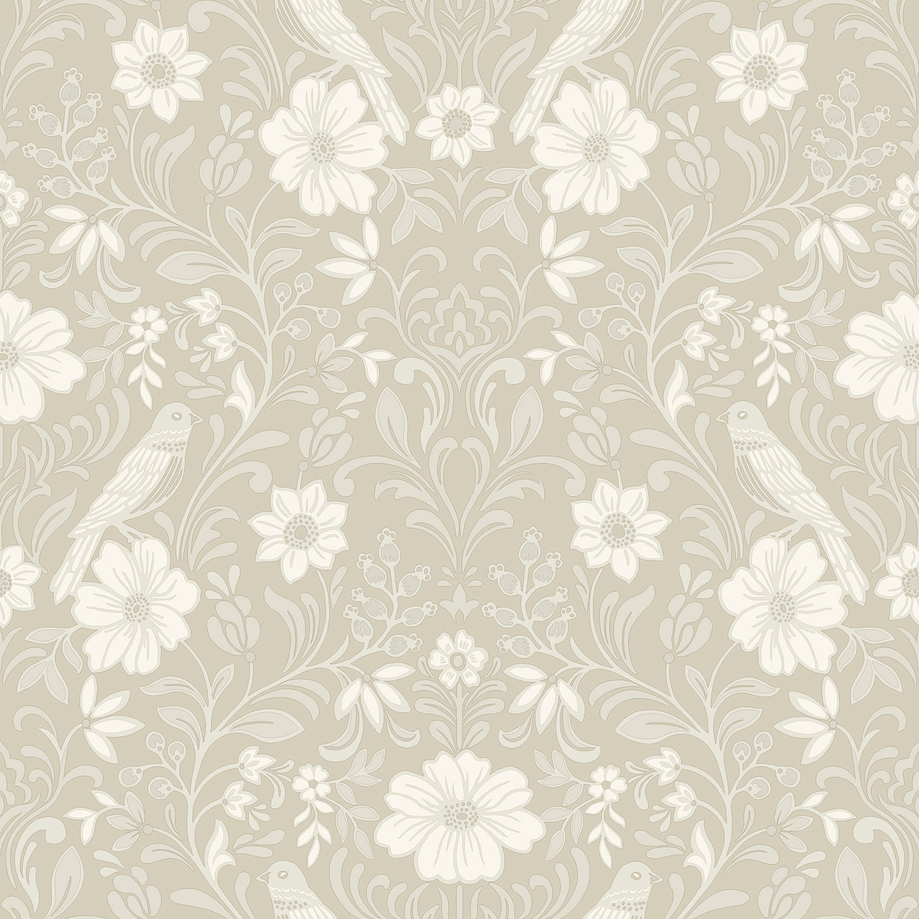 Use:Sparrows perch on flourishing blooms amid rich vines and ripe berries in this delightful woodland damask wallpaper. Featuring white and pale grey detailing against a taupe backdrop.?¨ This Colette Wallpaper measures approximately 20.5 inches wide by 33 feet long, measuring approximately 56.4 square feet per roll. This collection of timeless wallcoverings is layered with warmth and charm, and effortlessly blends nostalgic patterns with modern designs.?¨This assortment has a little bit of everything?simple stripes, subtle plaids, vintage motifs, and bold florals.