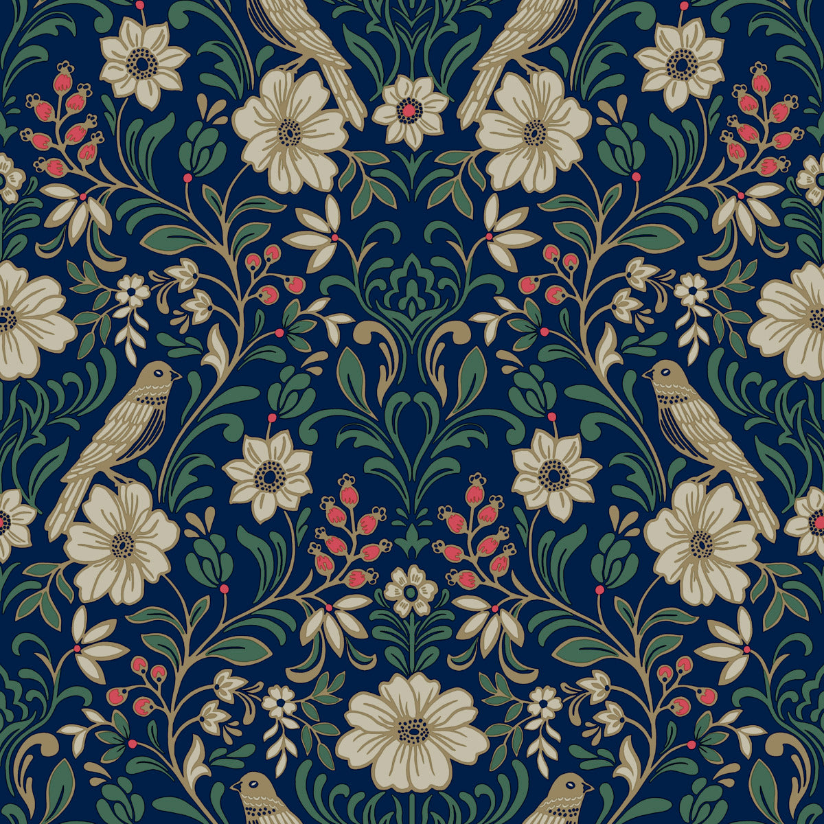 Use:Sparrows perch on flourishing blooms amid rich vines and ripe berries in this delightful woodland damask wallpaper.ring beige, golden taupe, green, and berry pink detailing against a navy backdrop.??? This Colette Wallpaper measures approximately 20.5 inches wide by 33 feet long, measuring approximately 56.4 square feet per roll. This collection of timeless wallcoverings is layered with warmth and charm, and effortlessly blends nostalgic patterns with modern designs.s assortment has a little bit of everything,simple stripes, subtle plaids, vintage motifs, and bold florals.