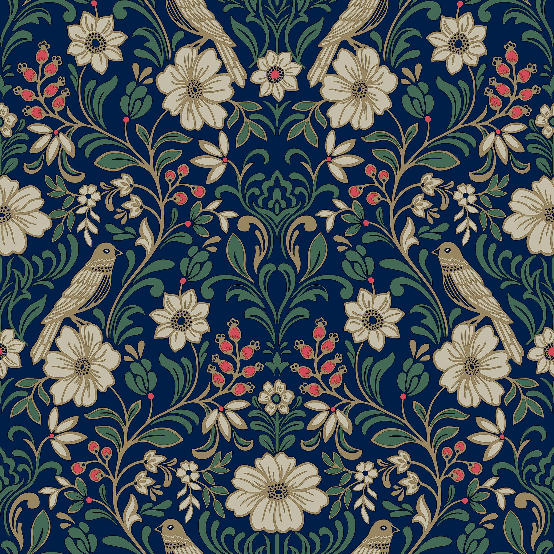 Use:Sparrows perch on flourishing blooms amid rich vines and ripe berries in this delightful woodland damask wallpaper. Featuring beige, golden taupe, green, and berry pink detailing against a navy backdrop.?¨ This Colette Wallpaper measures approximately 20.5 inches wide by 33 feet long, measuring approximately 56.4 square feet per roll. This collection of timeless wallcoverings is layered with warmth and charm, and effortlessly blends nostalgic patterns with modern designs.?¨This assortment has a little bit of everything?simple stripes, subtle plaids, vintage motifs, and bold florals.