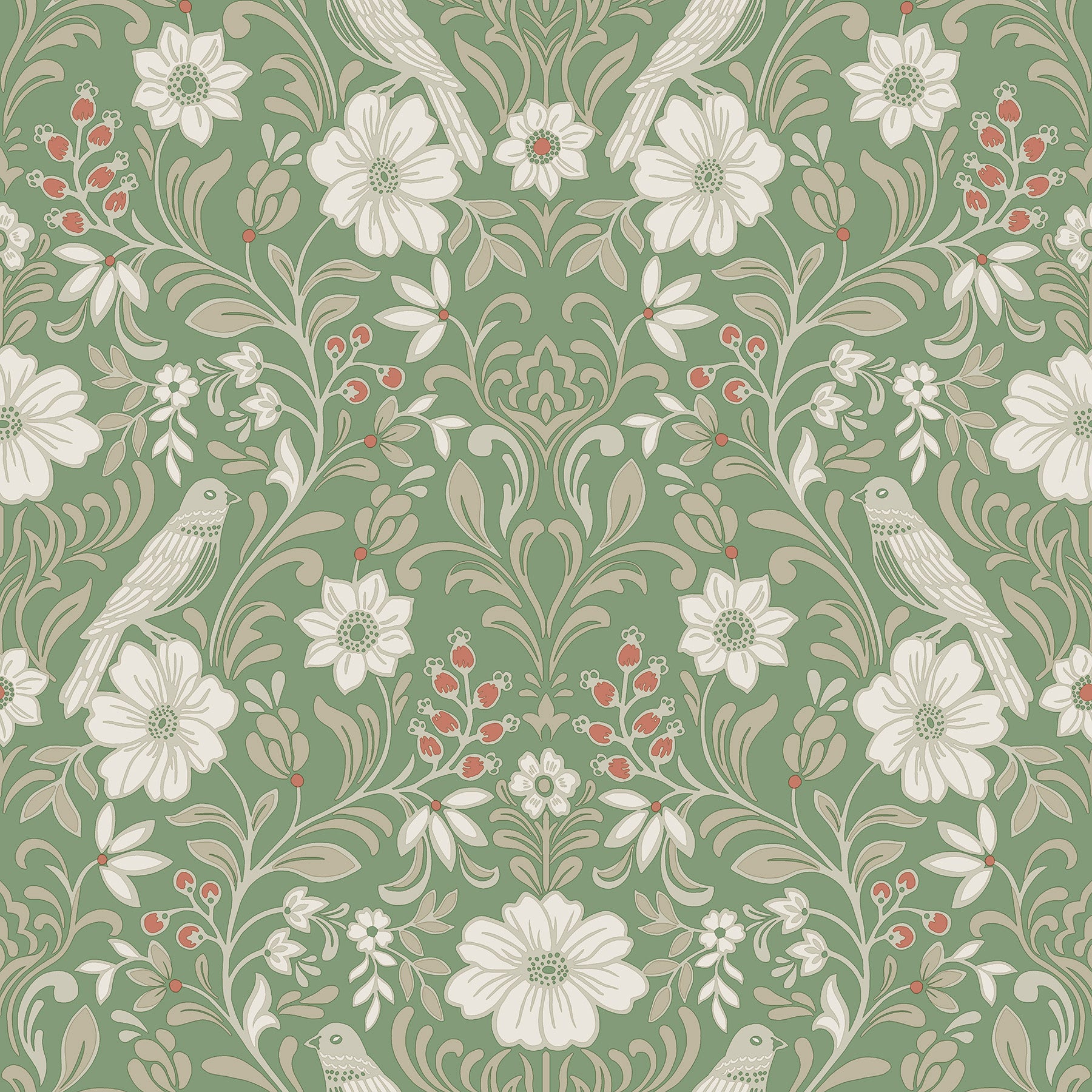Use:Sparrows perch on flourishing blooms amid rich vines and ripe berries in this delightful woodland damask wallpaper. Featuring white, pale grey, and berry pink detailing against a bright green backdrop.?¨ This Colette Wallpaper measures approximately 20.5 inches wide by 33 feet long, measuring approximately 56.4 square feet per roll. This collection of timeless wallcoverings is layered with warmth and charm, and effortlessly blends nostalgic patterns with modern designs.?¨This assortment has a little bit of everything?simple stripes, subtle plaids, vintage motifs, and bold florals.