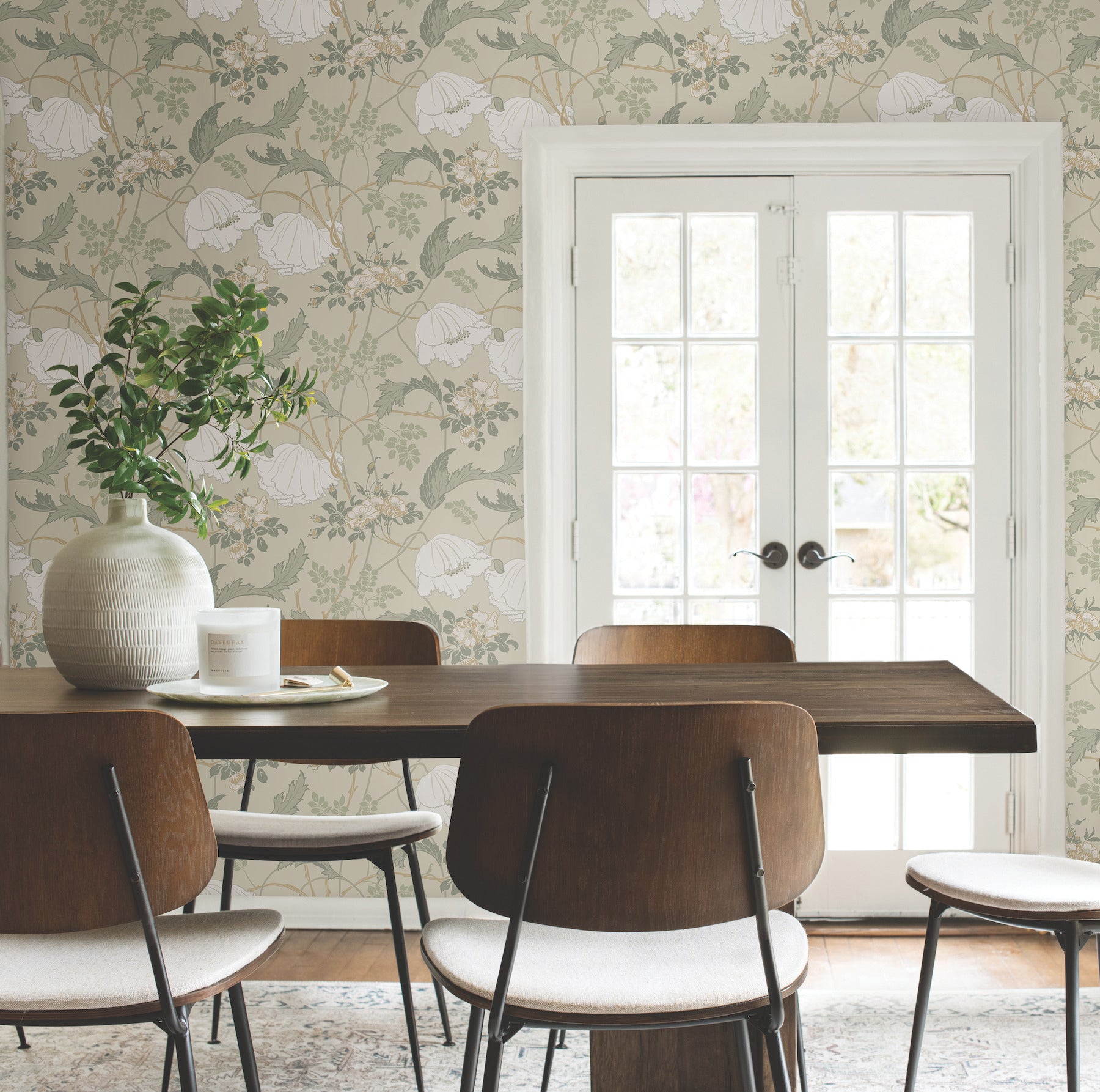 Use:Classic floral motifs gently intertwine with a delicate array of leafy vines. A palette of sage, moss, golden taupe, cream, and beige brings soft warmth to the design. This Gwendolyn Wallpaper measures approximately 20.5 inches wide by 33 feet long, measuring approximately 56.4 square feet per roll. This collection of timeless wallcoverings is layered with warmth and charm, and effortlessly blends nostalgic patterns with modern designs.?¨This assortment has a little bit of everything?simple stripes, subtle plaids, vintage motifs, and bold florals.