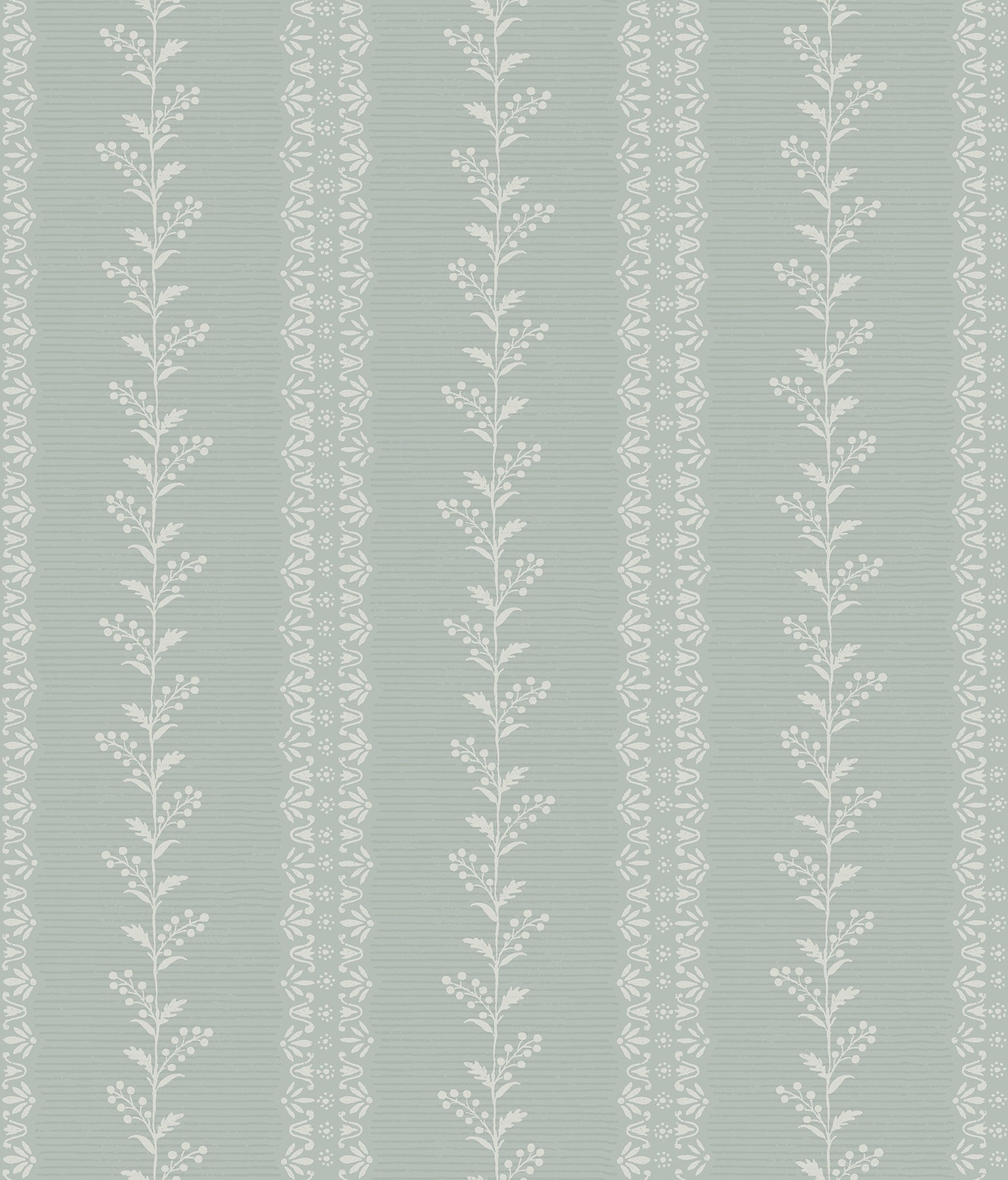 Use:An elevated striped design with nods to nature. Wide columns of delicately lined detailing are overlaid with climbing, berry-laden vines and floral stamps for a scalloped interlude. Featuring a simple palette of delicate seafoam and white. This Everleigh Wallpaper measures approximately 20.5 inches wide by 33 feet long, measuring approximately 56.4 square feet per roll. This collection of timeless wallcoverings is layered with warmth and charm, and effortlessly blends nostalgic patterns with modern designs.?¨This assortment has a little bit of everything?simple stripes, subtle plaids, vintage motifs, and bold florals.