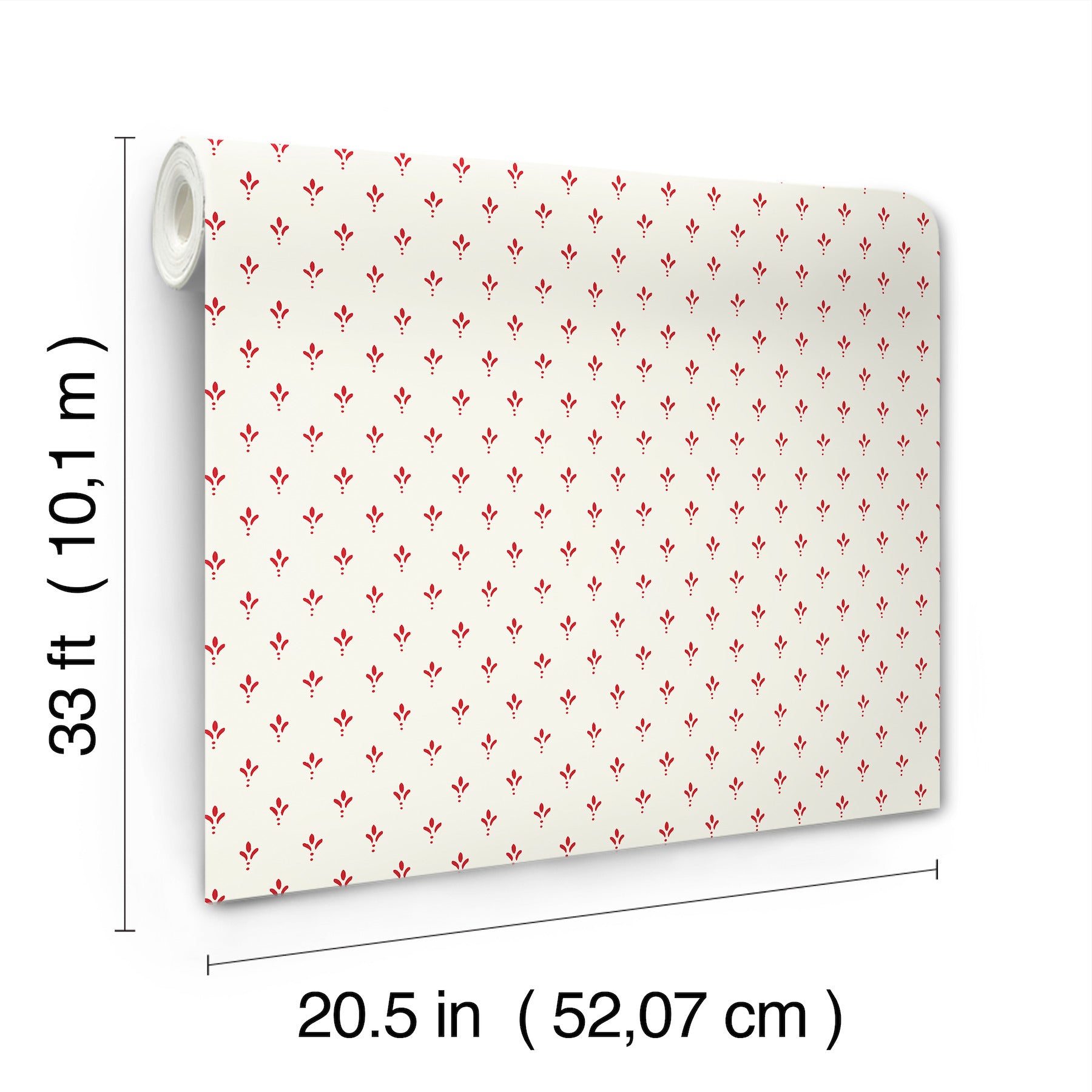 Use:Delicate embellishment meets timeless appeal in this petite, three-leaved stamp pattern inked in red along a cream backdrop. This Charm Wallpaper measures approximately 20.5 inches wide by 33 feet long, measuring approximately 56.4 square feet per roll. This collection of timeless wallcoverings is layered with warmth and charm, and effortlessly blends nostalgic patterns with modern designs.?¨This assortment has a little bit of everything?simple stripes, subtle plaids, vintage motifs, and bold florals.